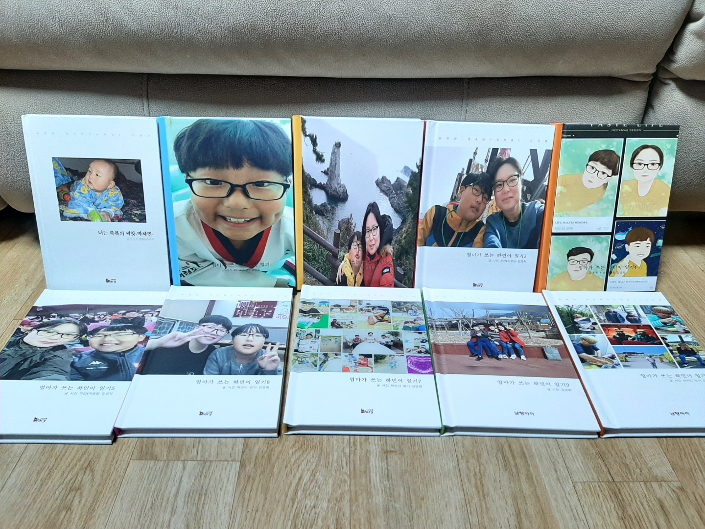 아이들을 키우면서 힘들고 행복했던 추억을 일기에 담아 소중하게 간직하고 있습니다. 40여권을 만들었는데 이 일기의 저자는 바로 저와 남편입니다. 지금은 아이들이 중2, 초5학년이 되어서 중2병과 사춘기로 툴툴 거리지만 일기를 꺼내서 읽어가며 예전 사진을 보면 국내여행, 해외여행을 간 곳과 자신들이 아팠던 때, 유치원 때 친구들의 이름을 말하며 함께 웃습니다. 가끔은 지우고 싶은 사진도 있다며 포스티 잇을 붙여 놓기도 합니다. 힘든 고통도 지나면 다 소중한 추억으로 남더라구요. 제가 아들 둘을 키우면서 남긴 것은 저만큼 자란 아들들과 육아의 내공이 담긴 소중한 육아 일기 책입니다. 여러 사이트에서 육아 일기를 무료든 유료든 출판을 해 주니 다들 도전해 봅시다. 주변의 사람들에게 많이 소개했지만 100일 동안 빠지지 않고 써서 무료로 출판 하시는 분은 딱 한분 밖에 되지 않았습니다. 육아 힘들고 어렵지만 저처럼 이렇게 이야기와 사진으로 남겨 보시면 어떨까요? 이 일기는 저희집 가보입니다.