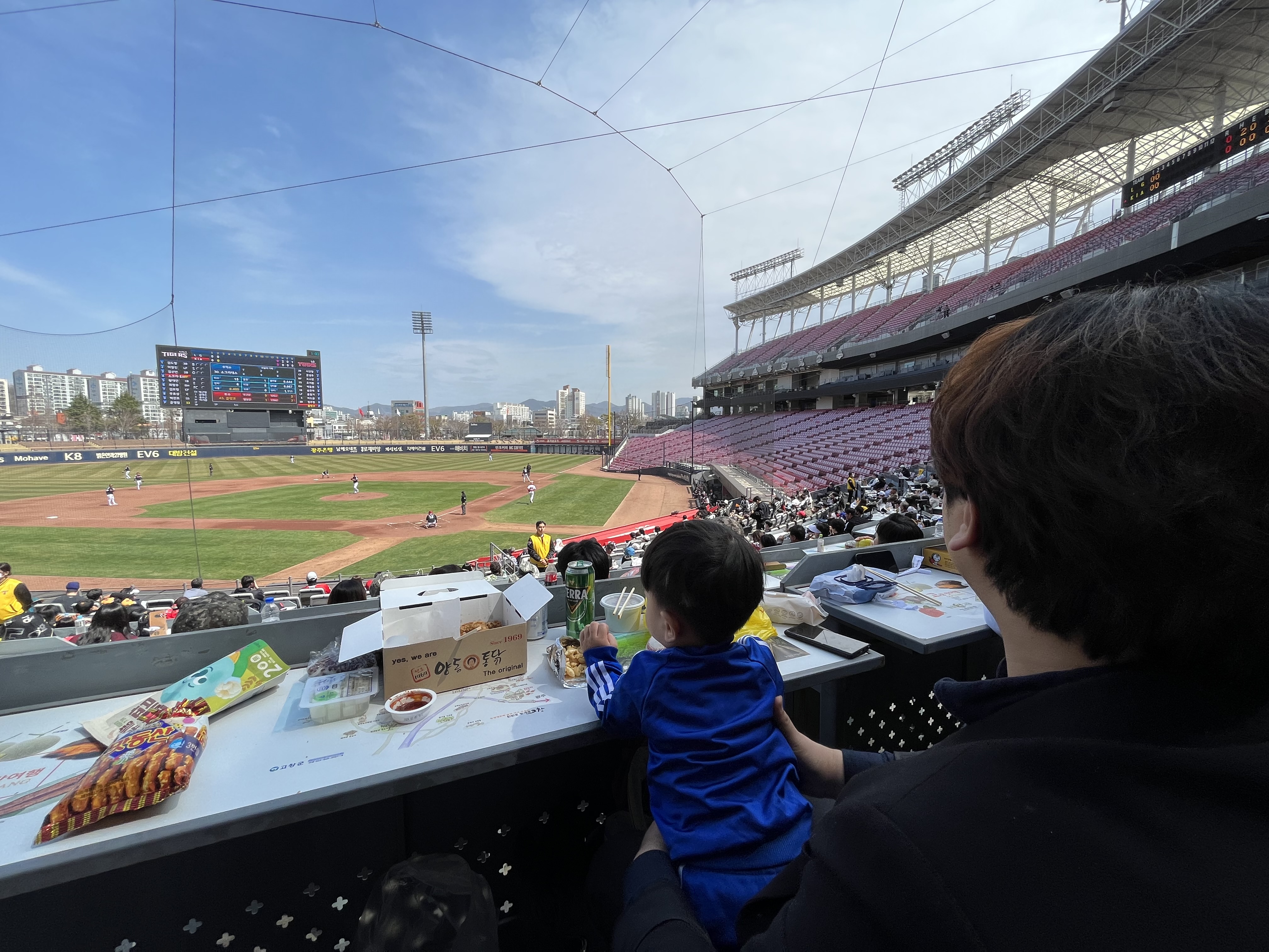 아이와 함께 3월 21일 광주 챔피언스필드에서 열린 광주vsLG 야구 경기 보고왔어요.