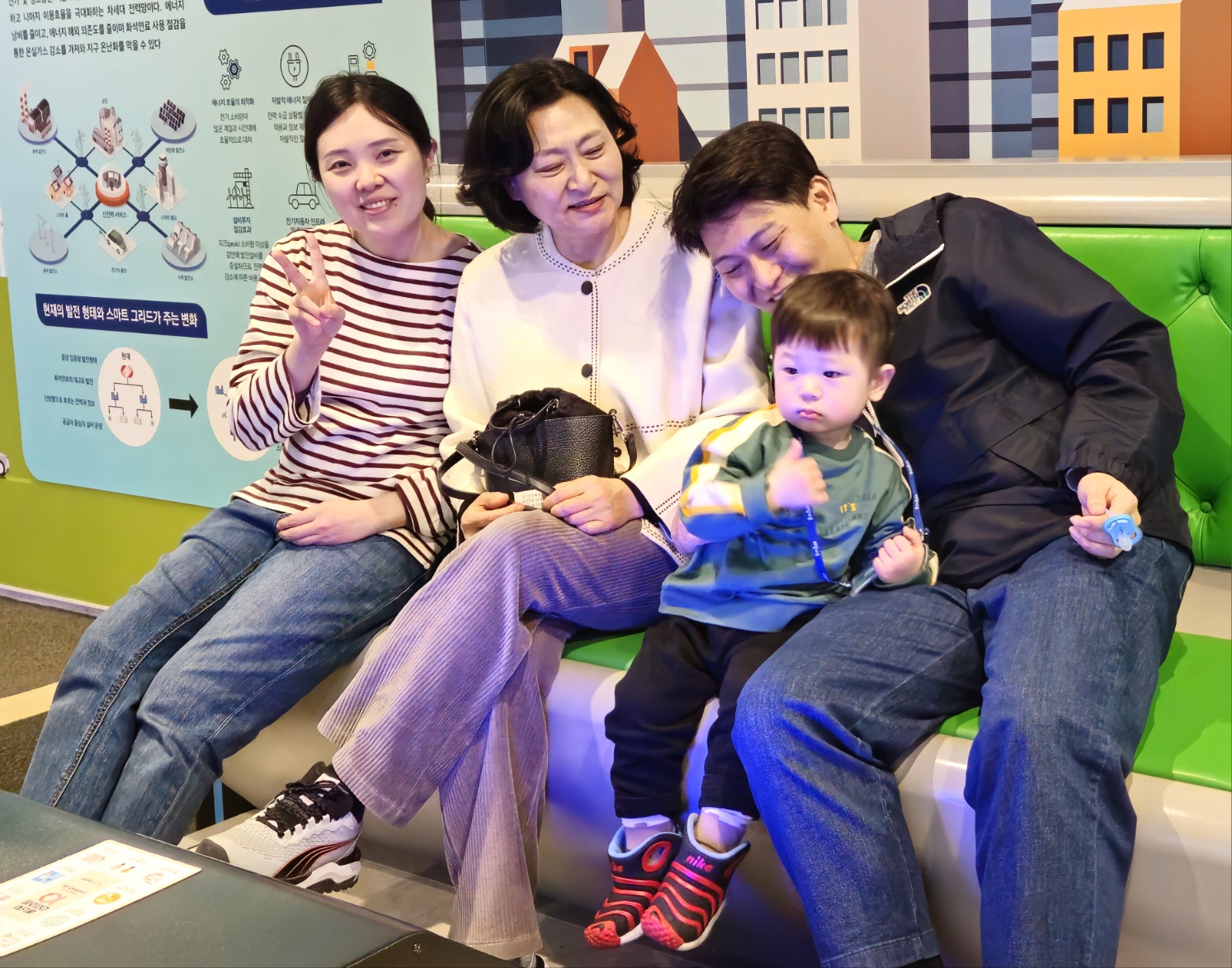 에너지파크는 새로 개관을 해서 그런지 무척 깔끔했습니다. 에너지 목걸이를 착용하고 안으로 들어가자 에너지를 직접 만들어 볼 수 있는 체험기구도 있고 에너지 목걸이를 가져가면 초록빛으로 바뀌는 시설도 있었습니다. 안쪽에는 AI 자동차와 드론 택배도 있어서 아이가 직접 눌러보기도 하였습니다. 마지막에는 아이가 직접 그린 그림을 화면에 띄우는 시설도 있었습니다. 다양하고 재밌는 시설이 있어 아이뿐만 아니라 어른들도 즐겁게 관람을 하였습니다. 거의 관람을 다 하면 에너지 인증 사진을 찍는 곳도 있어 마지막까지 즐거웠습니다. 에너지파크 앞에는 에너지그네, 에너지 자전거 등 다양한 놀이기구가 있어 그 곳에서도 즐거운 시간을 보냈습니다.