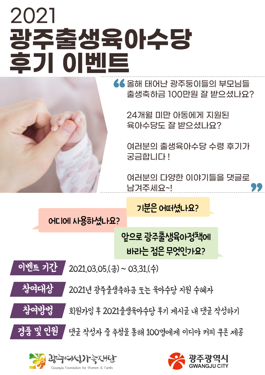[마감]2021년 광주출생육아수당 후기 이벤트 참여하세요~!