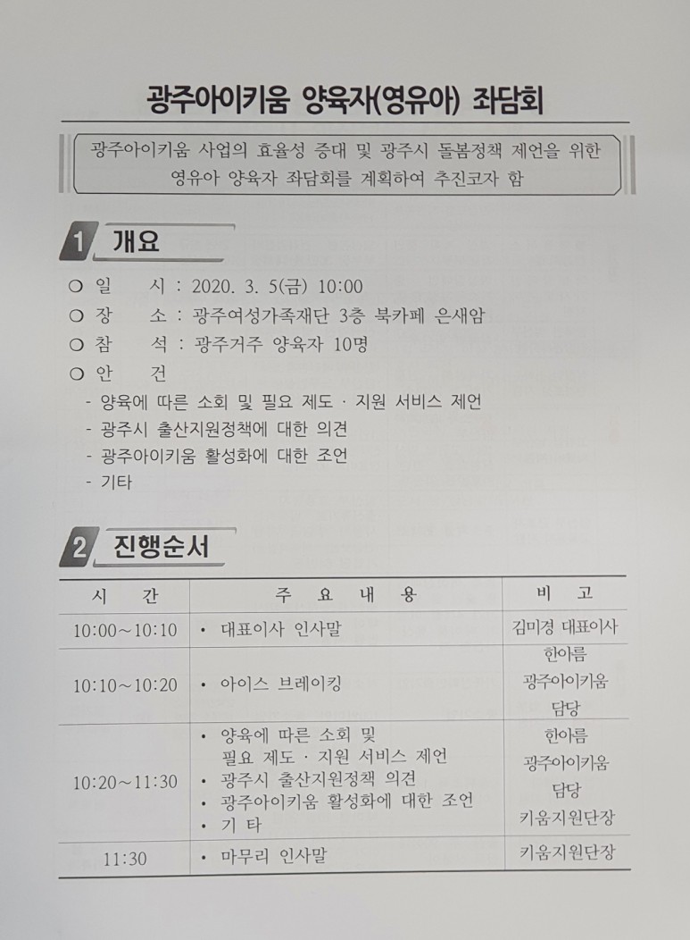 광주아이키움 양육자(영유아) 좌담회 참석후기
