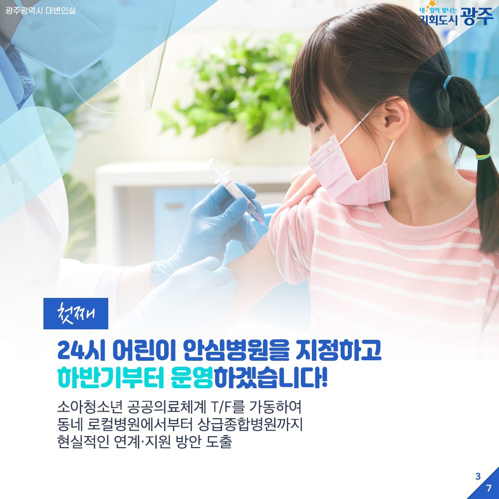광주시가 24시 어린이 안심병원 운영 및 청소년 공공의료체계 전담팀 가동 등 어린이 공공의료체계 구축에 나섭니다.