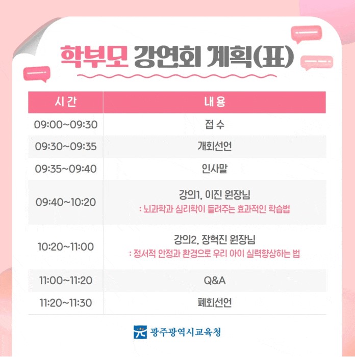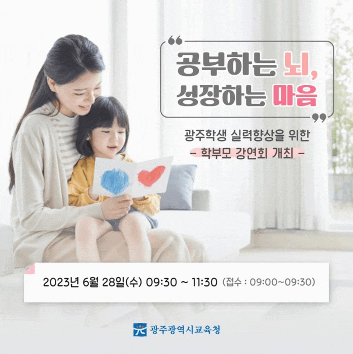 광주광역시 교육청에서는 광주학생 실력향상을 위한 "학부모 강연회"를 개최합니다.