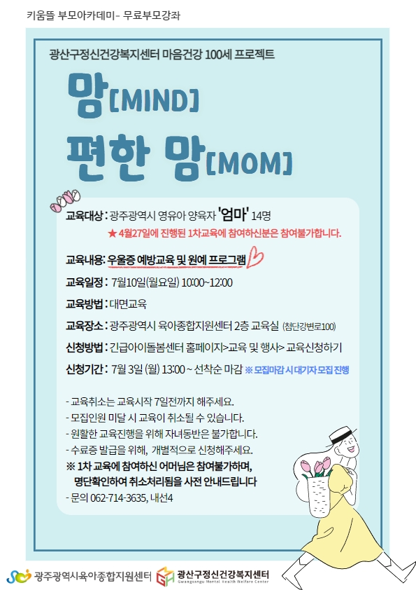 [광주육아종합지원센터] 맘(MIND) 편한 맘(MOM) (무료부모강좌) 안내/ 엄마대상! 우울증예방교육과 만들기교실을 함께!