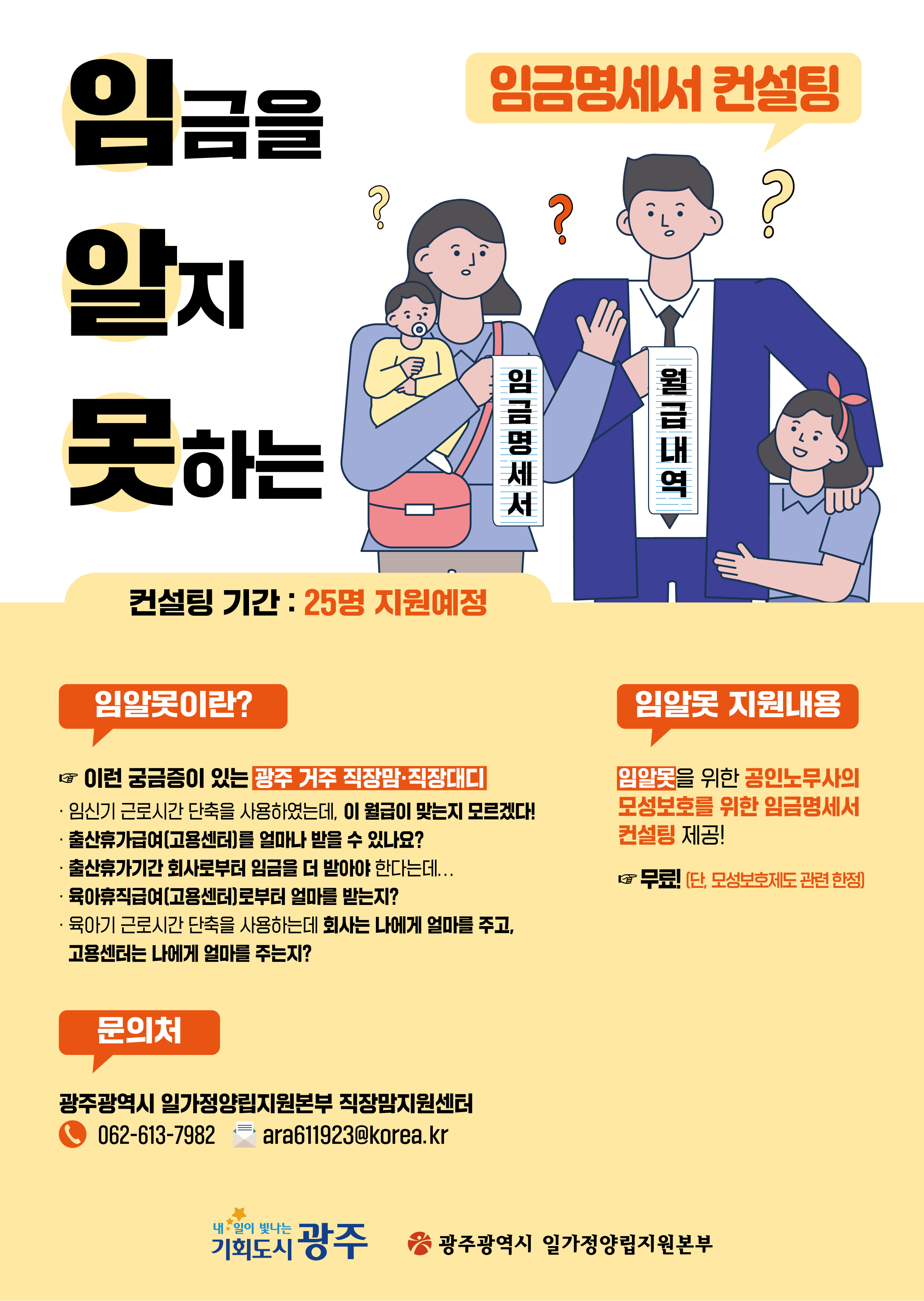 # 광주 거주 직장맘대디를 위한 임금명세서 컨설팅 지원 사업 안내