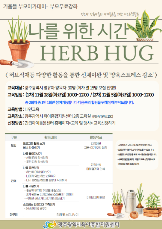 [육아종합지원센터] 키움뜰 부모아카데미 - 나를위한 HERB HUG(부모힐링교육)