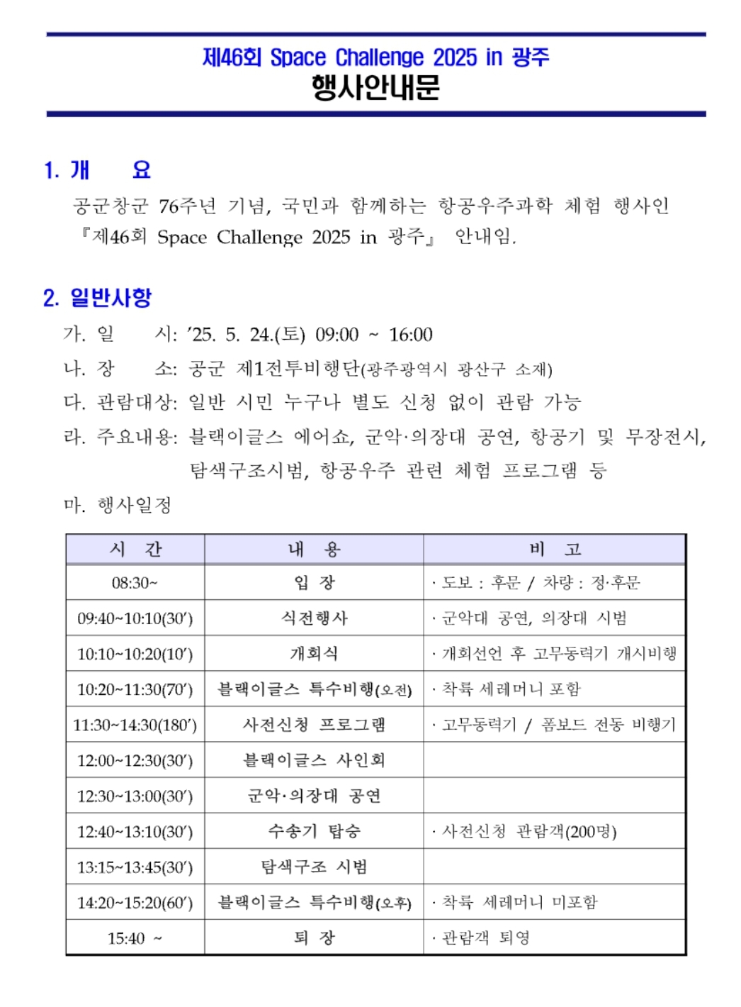 📍 장소: 공군 제 1전투비행단 (광주광역시 광산구 소재)