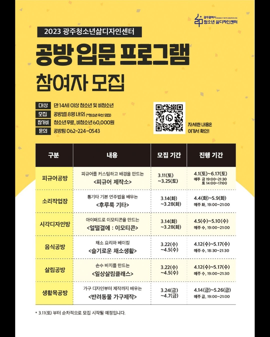 ▪ 모집 : 2023. 3. 11.(토) ~ 각 공방별 상이