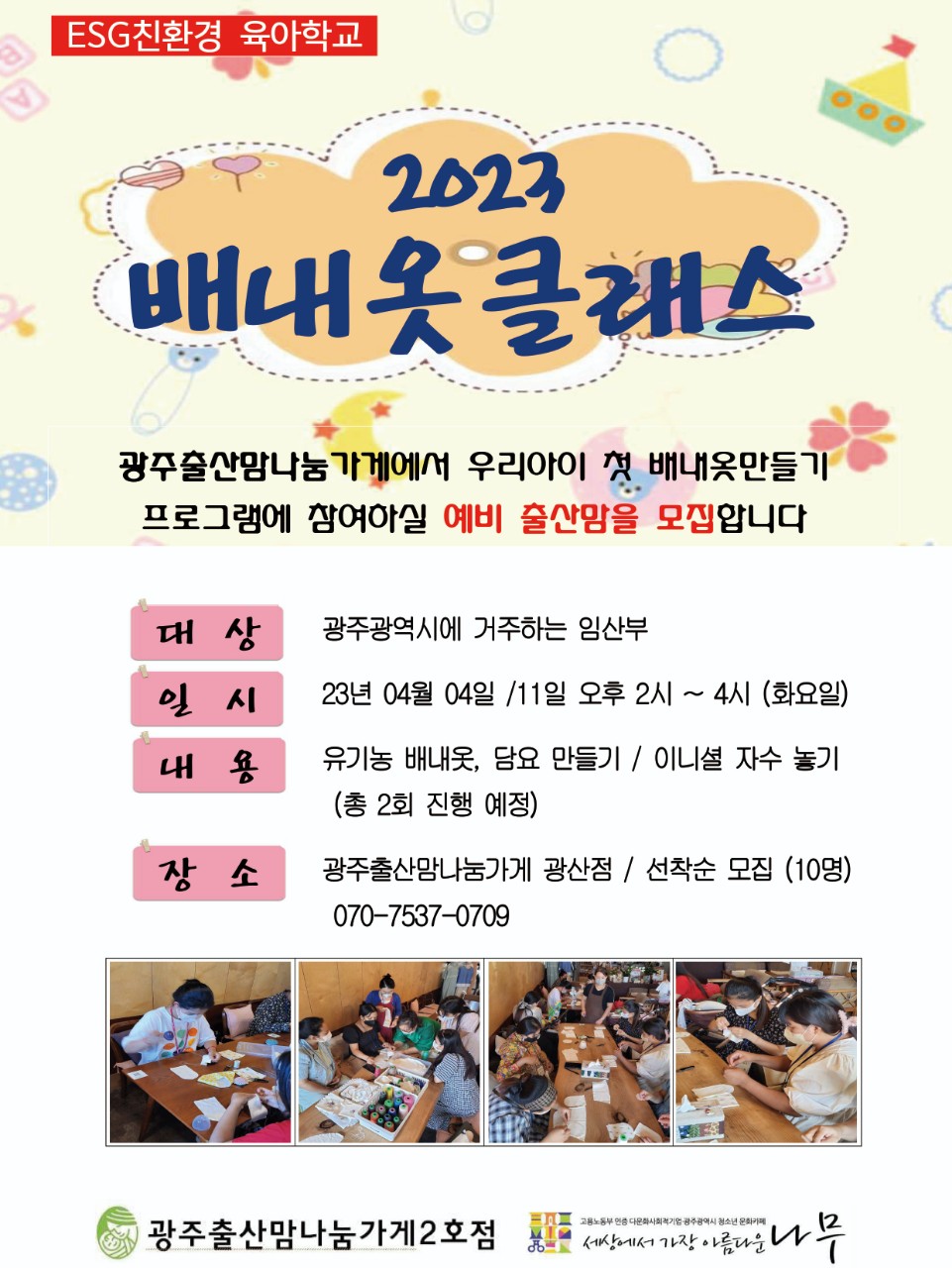 ■ 장 소 : 광주출산맘나눔가게 광산점 / 선착순 모집 (10명)