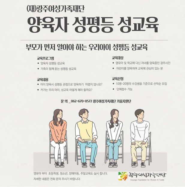 - 부모가 먼저 알아야 하는 우리아이 성평등 성교육을 위해 교육 신청을 받습니다.