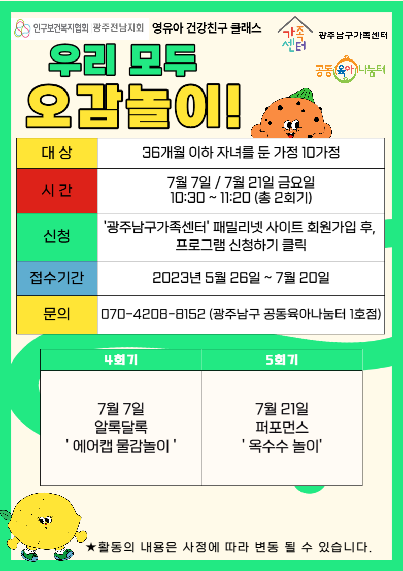 [광주남구가족센터]영유아 건강친구 클래스 '우리 모두 오감놀이!'