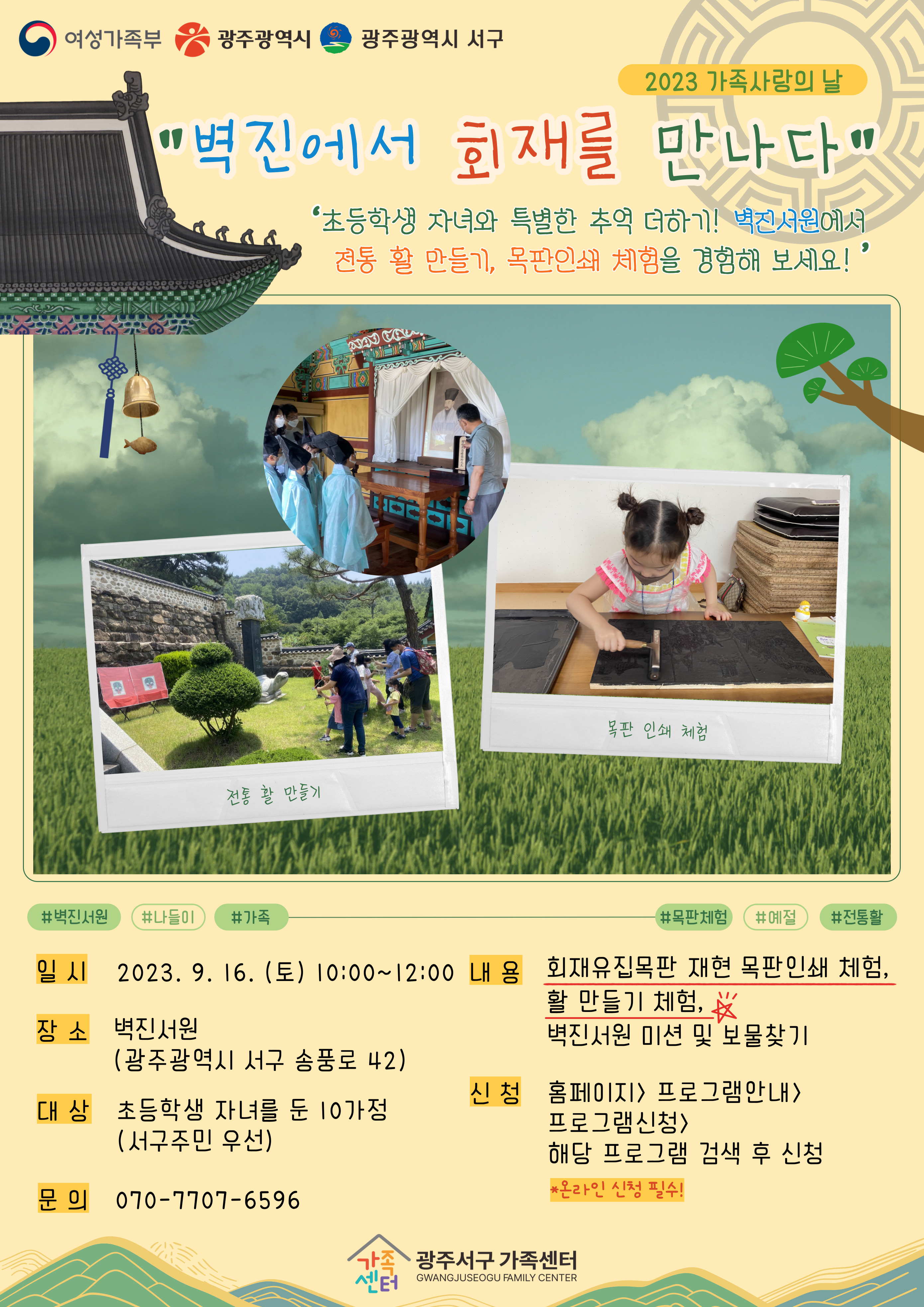 벽진서원에서 전통 활 만들기, 목판인쇄 체험을 경험해 보세요!'