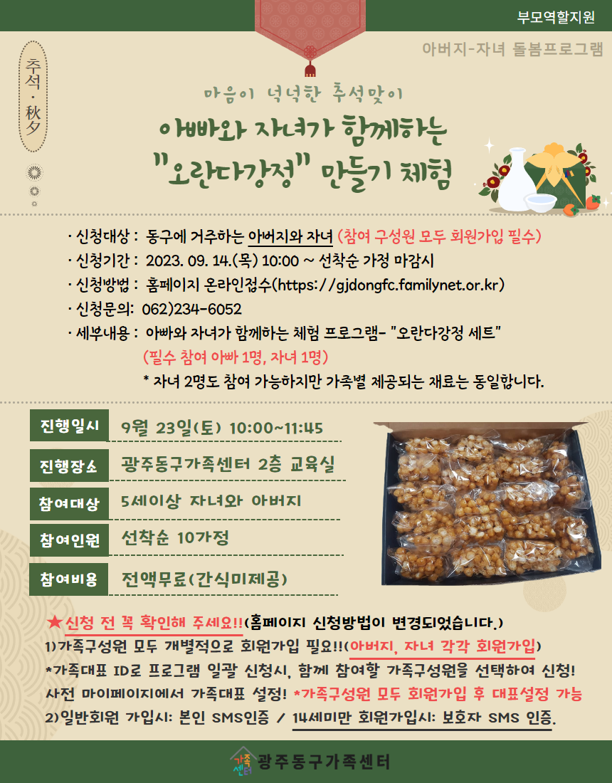 [동구가족센터] 아버지-자녀돌봄프로그램 "오란다강정 만들기"