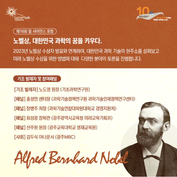[국립광주과학관] 노벨상, 대한민국 과학의 꿈을 키우다.(제16회 필 사이언스 포럼)