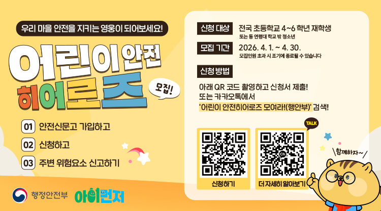 [모집] 2026년 어린이 안전히어로즈 1기 신규 모집