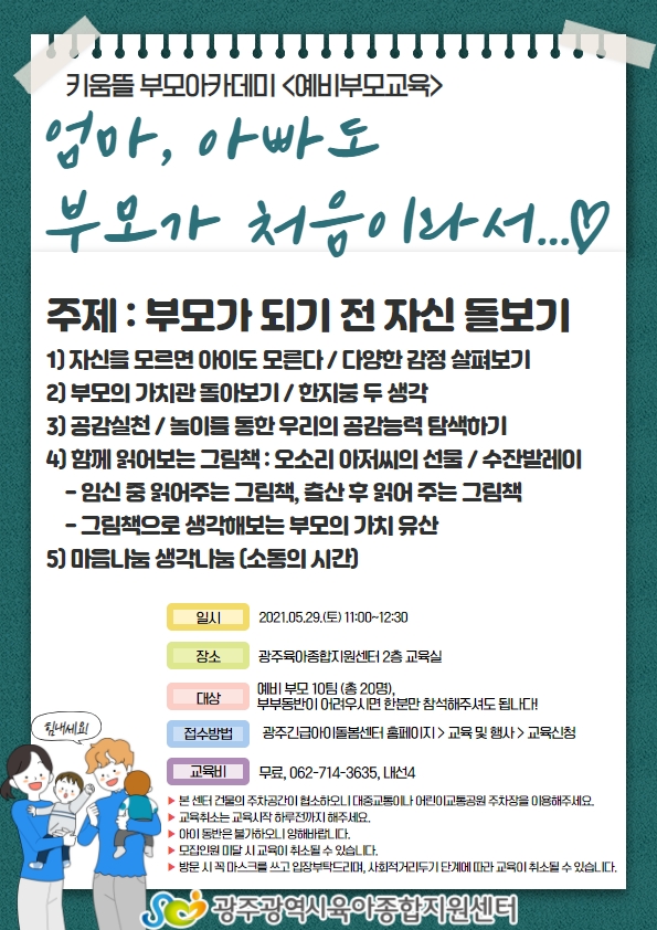 예비부모교육 모집 안내 [광주육아종합지원센터 키움뜰 부모교육] - 엄마, 아빠도 부모는 처음이라서...