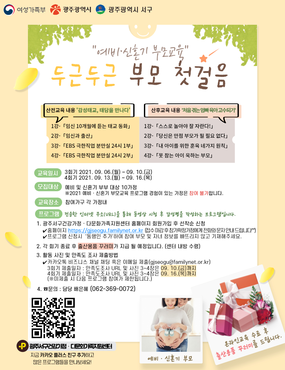 🚩광주서구건강가정ㆍ다문화가족지원센터 [예비ㆍ신혼기 부모교육 '두근두근 부모 첫걸음'] 프로그램 모집