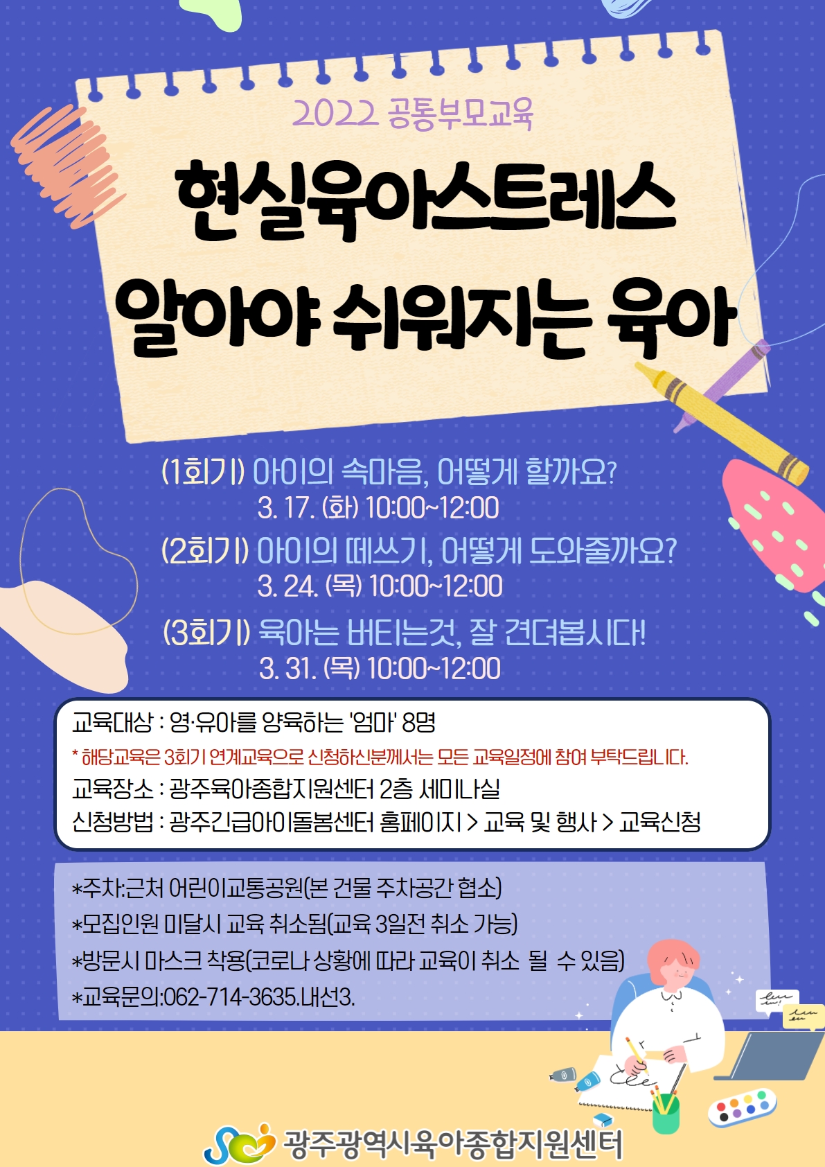 [광주육아종합지원센터] 부모 무료강좌(공통부모교육)- 교육명: 양육스트레스관리