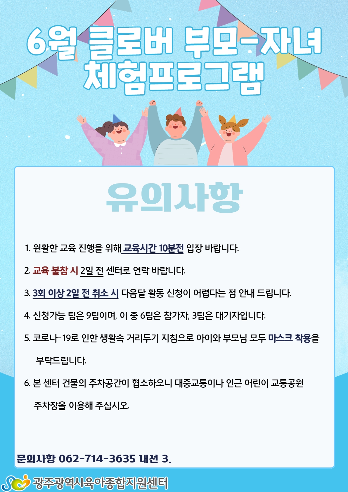 [광주육아종합지원센터] 6월 부모-자녀체험프로그램 등록일 : 2022-05-10 11:12 작성자 : 광주육아종합지원센터 조회수 : 242 [광주긴급아이돌봄센터 홈페이지] - [교육및행사]에서 신청가능합니다!많은 관심과 신청 바랍니다 목록