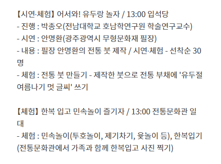 전통문화원 공연 및 체험일정 안내