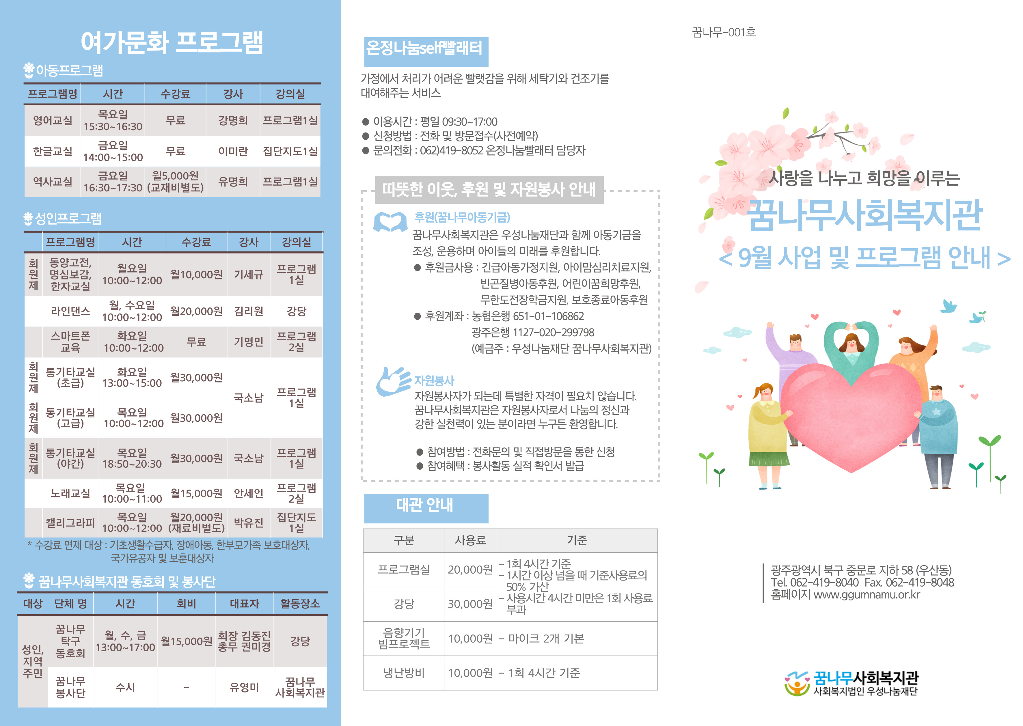 [꿈나무사회복지관] 9월 사업 및 프로그램 안내 소식지