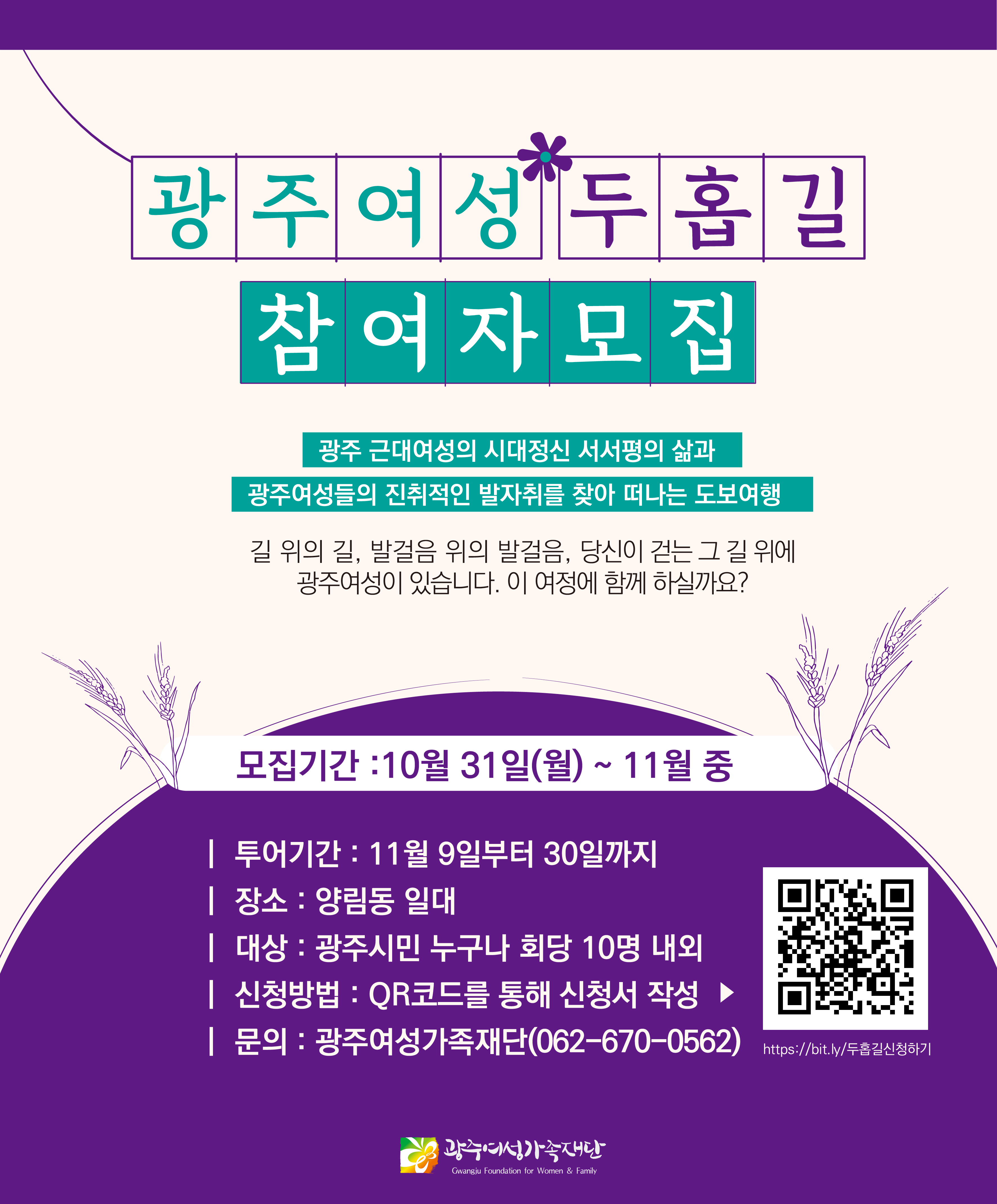 [광주여성가족재단] 광주여성사체험로드 "광주여성 두홉길" 참여자 모집