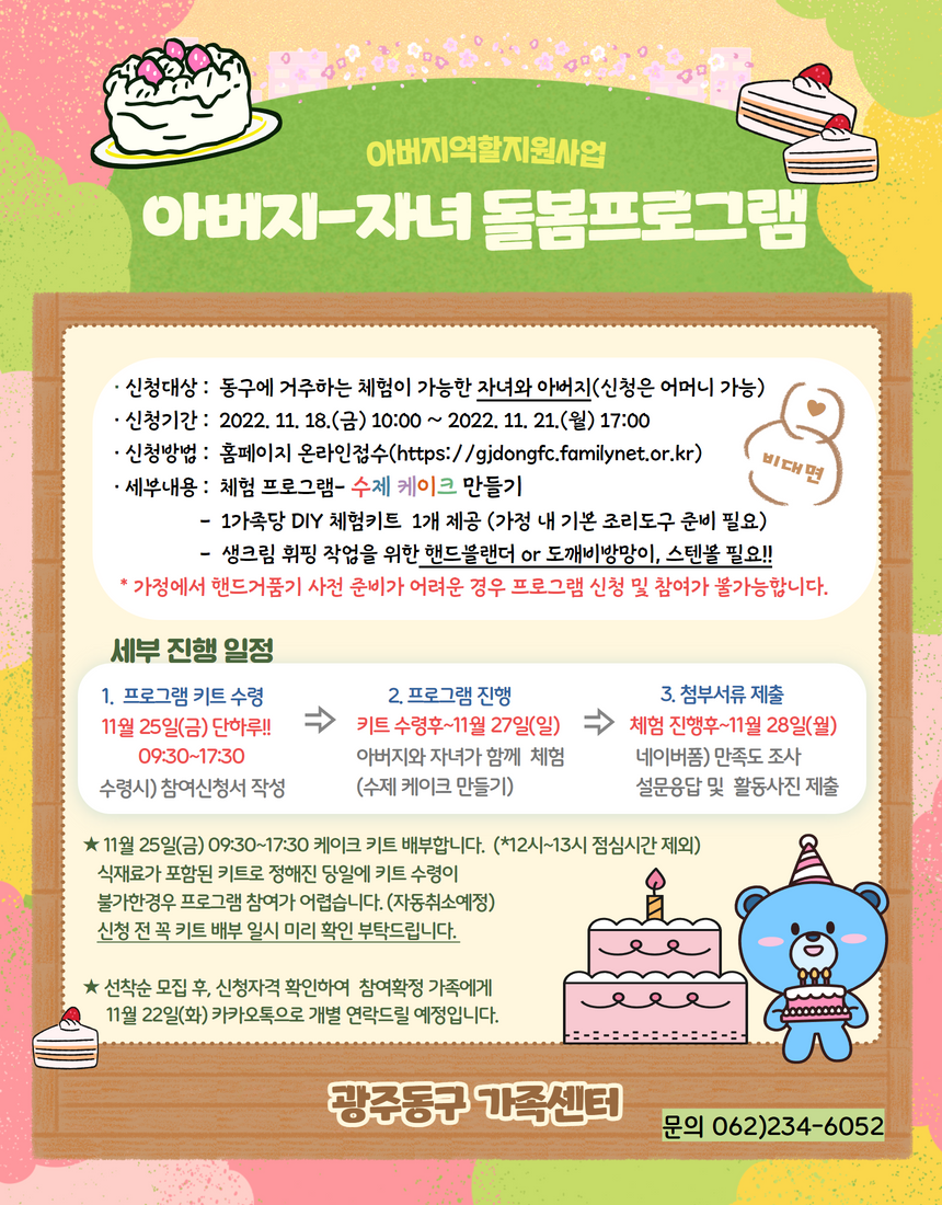 [광주동구가족센터]아버지-자녀 돌봄프로그램 - 케이크 만들기 참여자 모집!