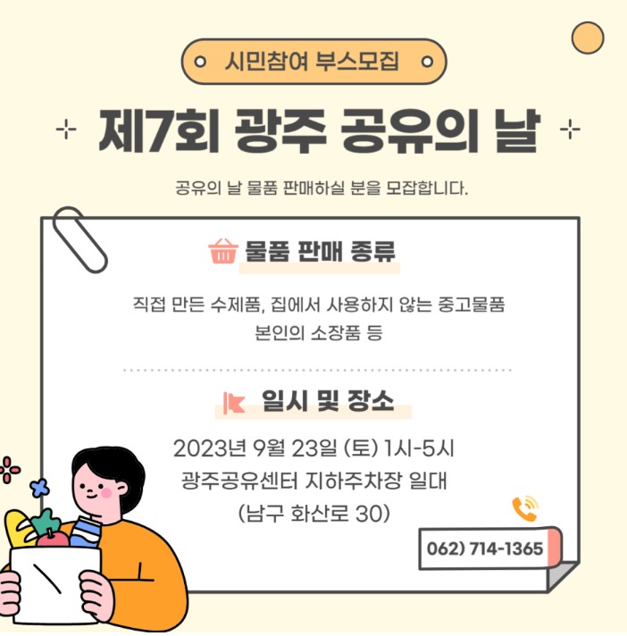 2023년 9월 23일(토) 1시~5시까지 운영되는 광주공유의 날에 많은 시민들의 참여와 관심 부탁드립니다.
