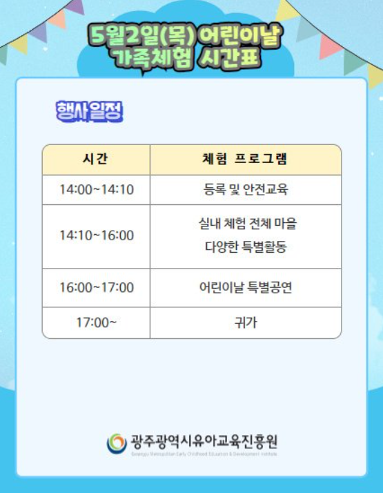 [광주유아교육진흥원] 5월 가족체험 신청안내