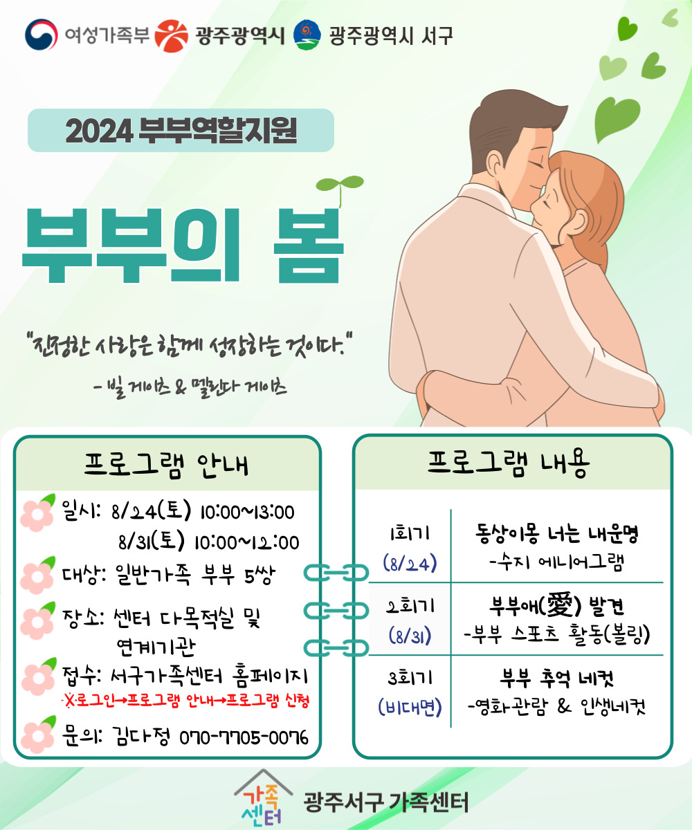 [광주서구가족센터] 부부역할지원 프로그램에 참여하고, 우리 자녀에게 행복한 가정 선물하세요~~!!