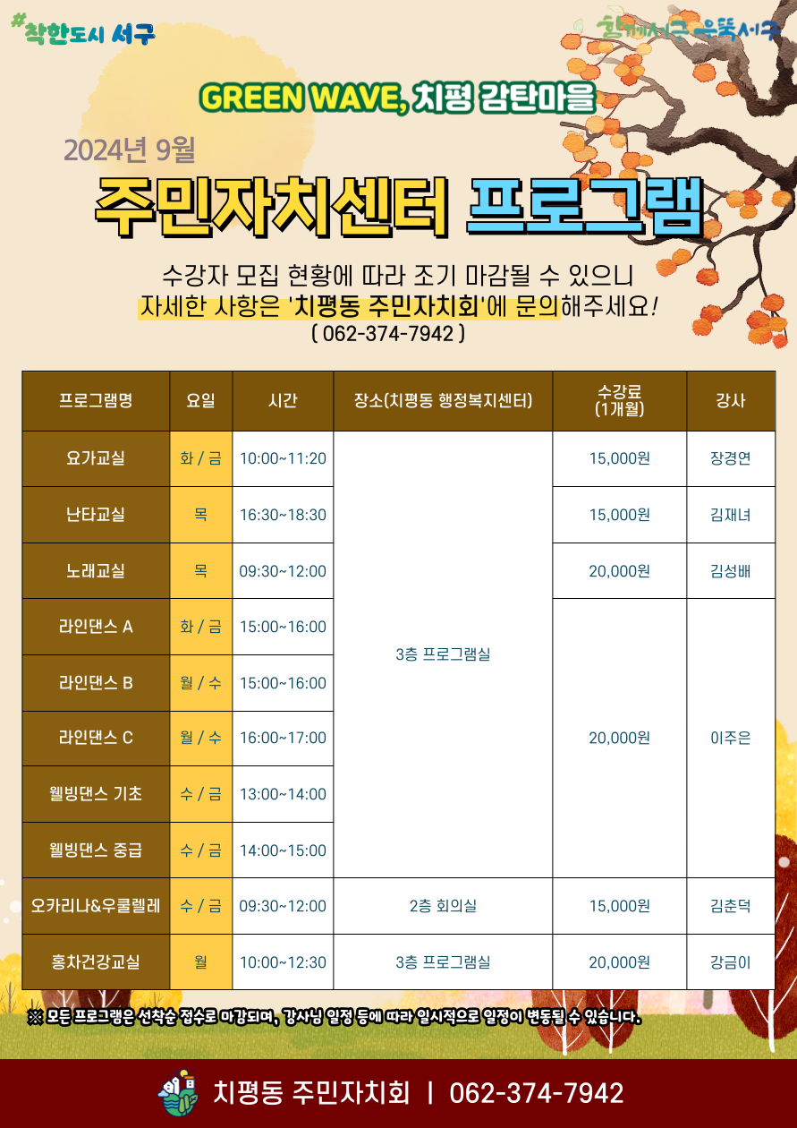 2024년 치평동 주민자치 프로그램 안내(24년 9월)