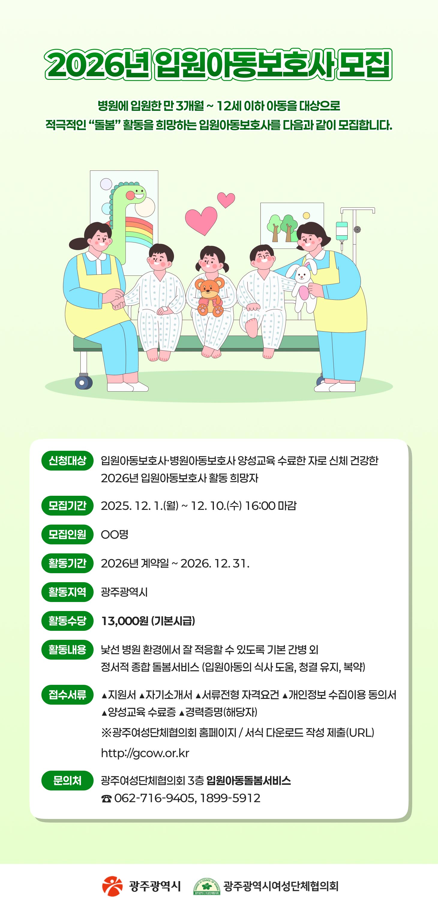 [광주여성단체협의회] 26년 입원아동보호사 모집의 건