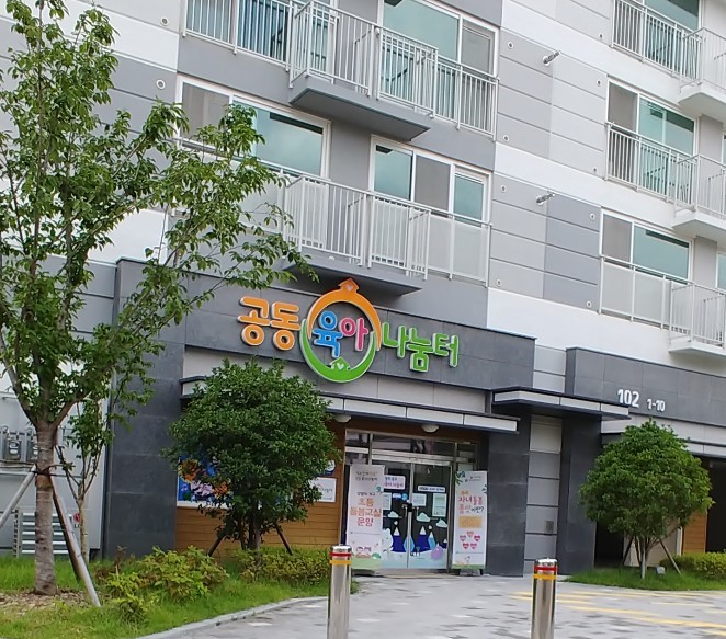 동구 공동육아나눔터 입구입니다. 주민들이 드나드는 공간에 이용하기 편한 곳에 위치해 있습니다.