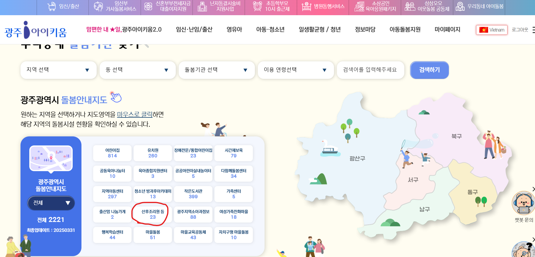 보통 산후조리원이 있는 병원에 신생아실이 있기 때문에 광주아이키움 돌봄지도에 있는 산후조리실 메뉴에서 검색하실 수 있습니다.