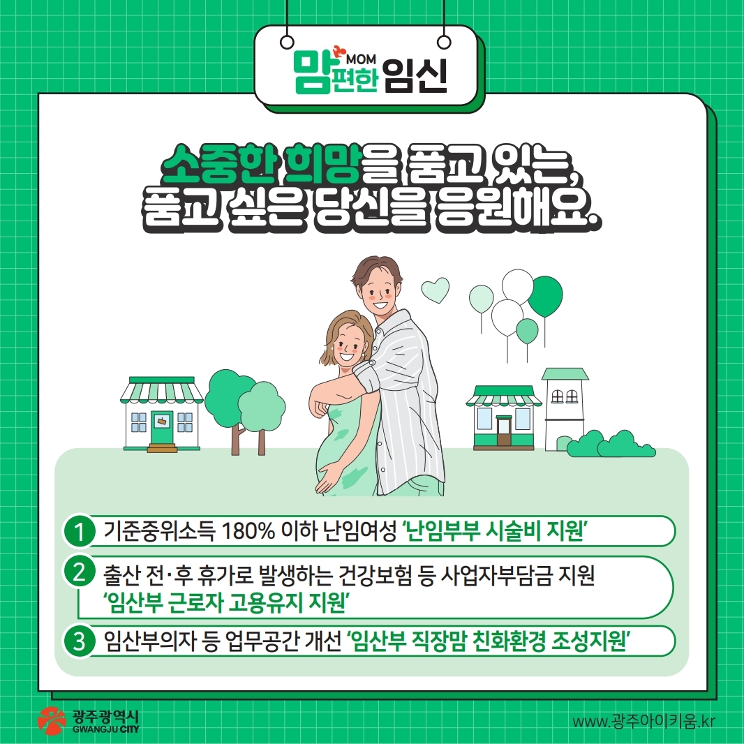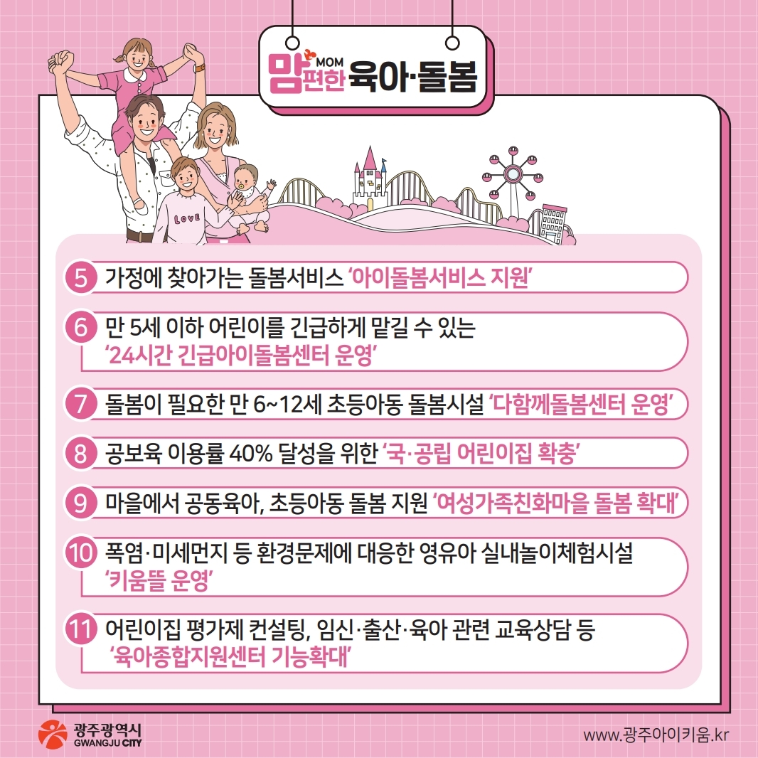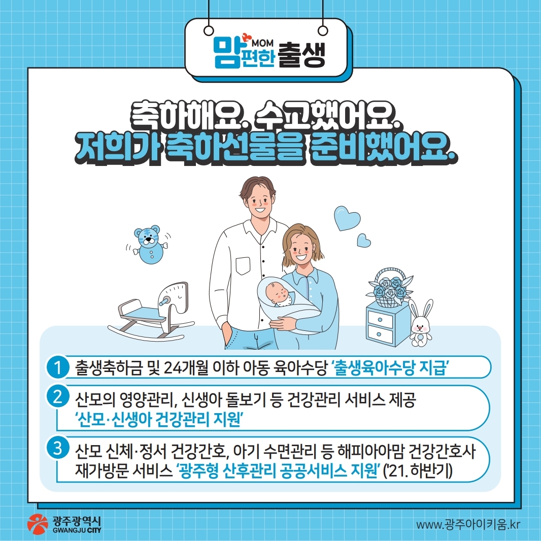 <맘MOM편한 광주> 아이 낳아 키우기 좋은 광주! 생애주기별 지원정책 ! -종합편 등록일 : 2021-06-02 15:49 작성자 : 운영자 조회수 : 4354 첨부파일 아이키우기좋은광주.JPG 다운로드 목록