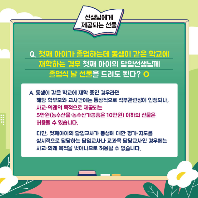 졸업과 신학기 시즌 학교에서 알아야 할 청탁금지법 Q&A 등록일 : 2023-02-14 14:58 작성자 : 운영자 조회수 : 739 첨부파일 화면 캡처 2023-02-14 145126.png 다운로드 출처 : 광주광역시 교육청 목록