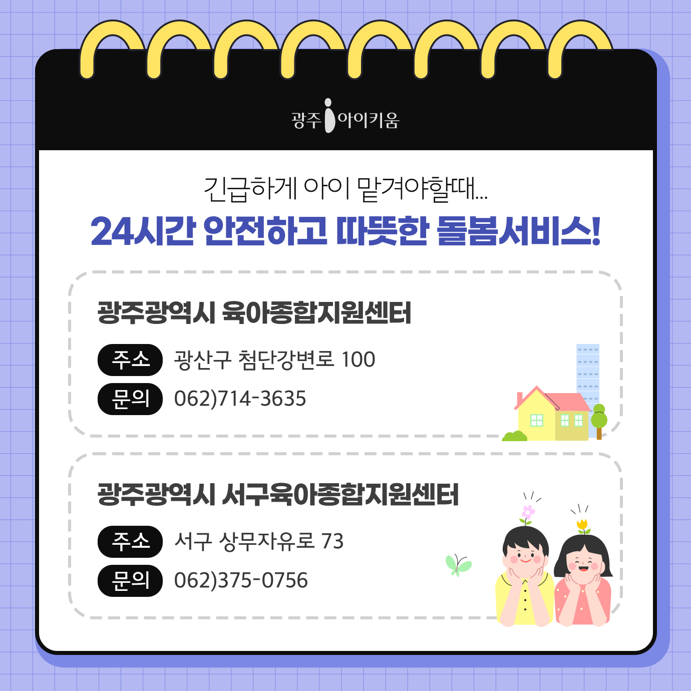 긴급하게 아이 맡겨야할 때, 24시간 안전하고 따뜻한 돌봄서비스 등록일 : 2023-02-24 09:07 작성자 : 운영자 조회수 : 1168 첨부파일 카드뉴스 돌봄1.jpg 다운로드 목록