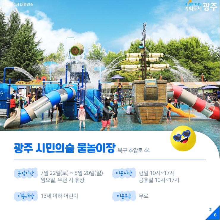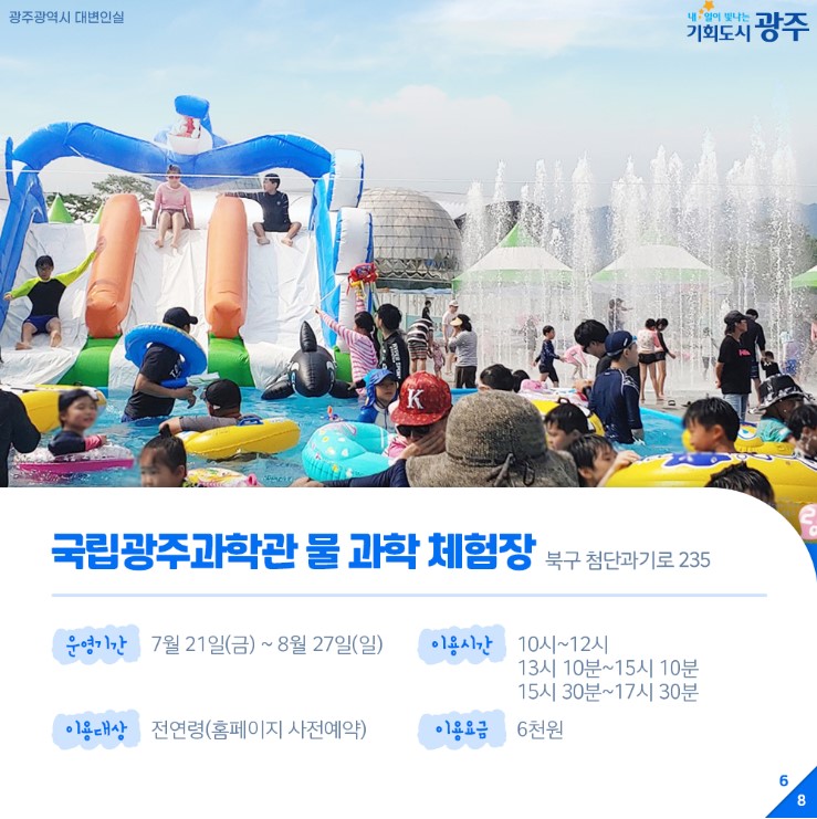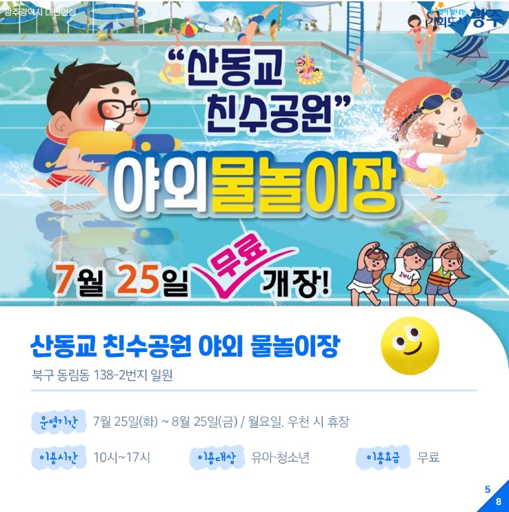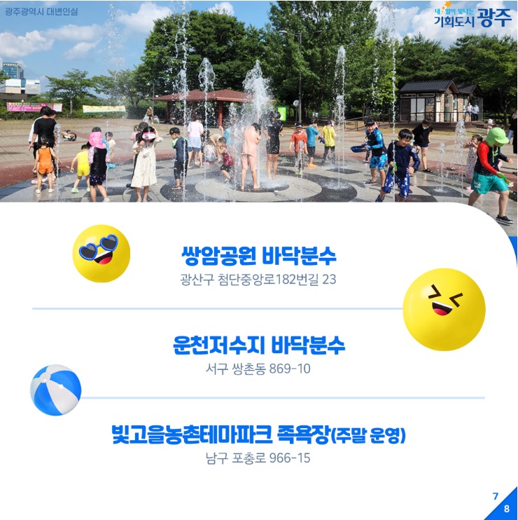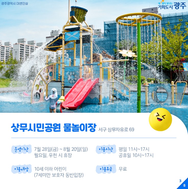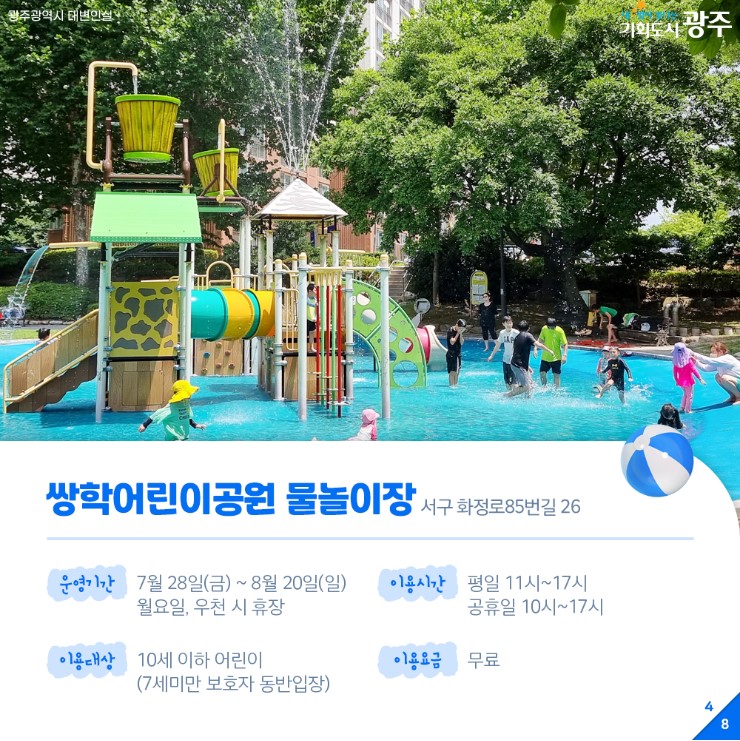 <in 광주> 물놀이장 정보 총정리 등록일 : 2023-07-28 09:13 작성자 : 운영자 조회수 : 968 첨부파일 화면 캡처 2023-07-28 090711.jpg 다운로드 목록