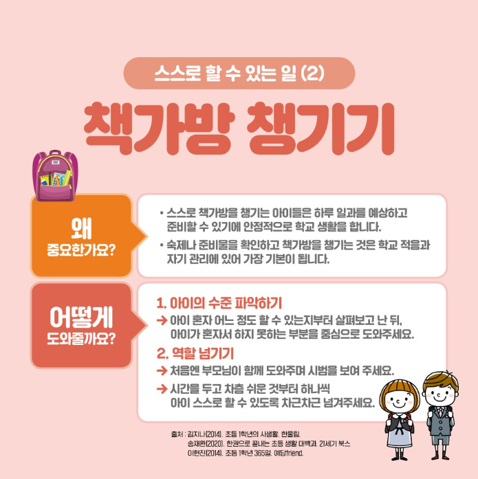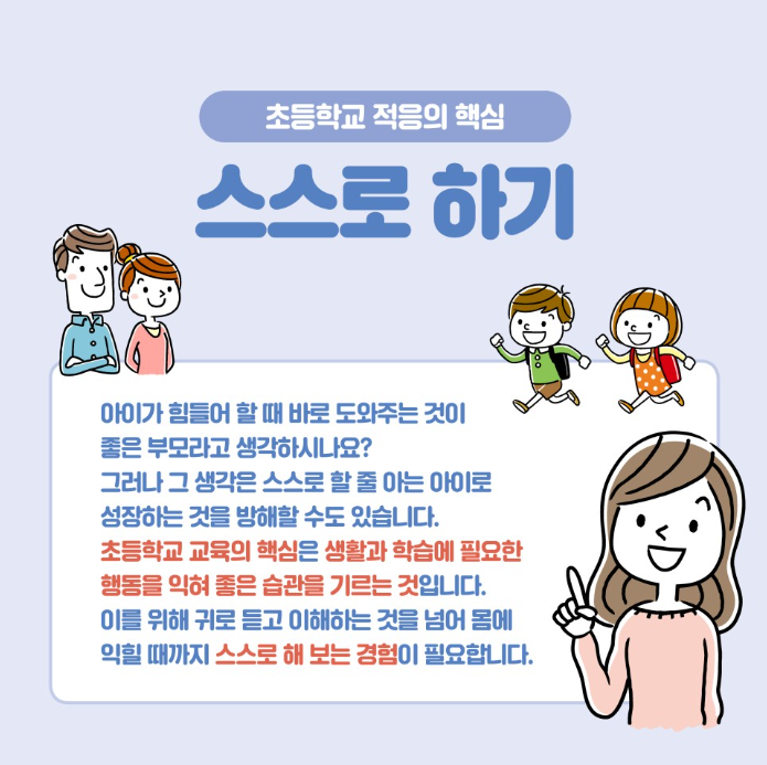 초등학교 1학년 적응 성공 공식! 우리 아이 초등학교 준비하기 등록일 : 2023-12-18 11:44 작성자 : 운영자 조회수 : 725 첨부파일 77.png 다운로드 <출처 : 교육부> 목록
