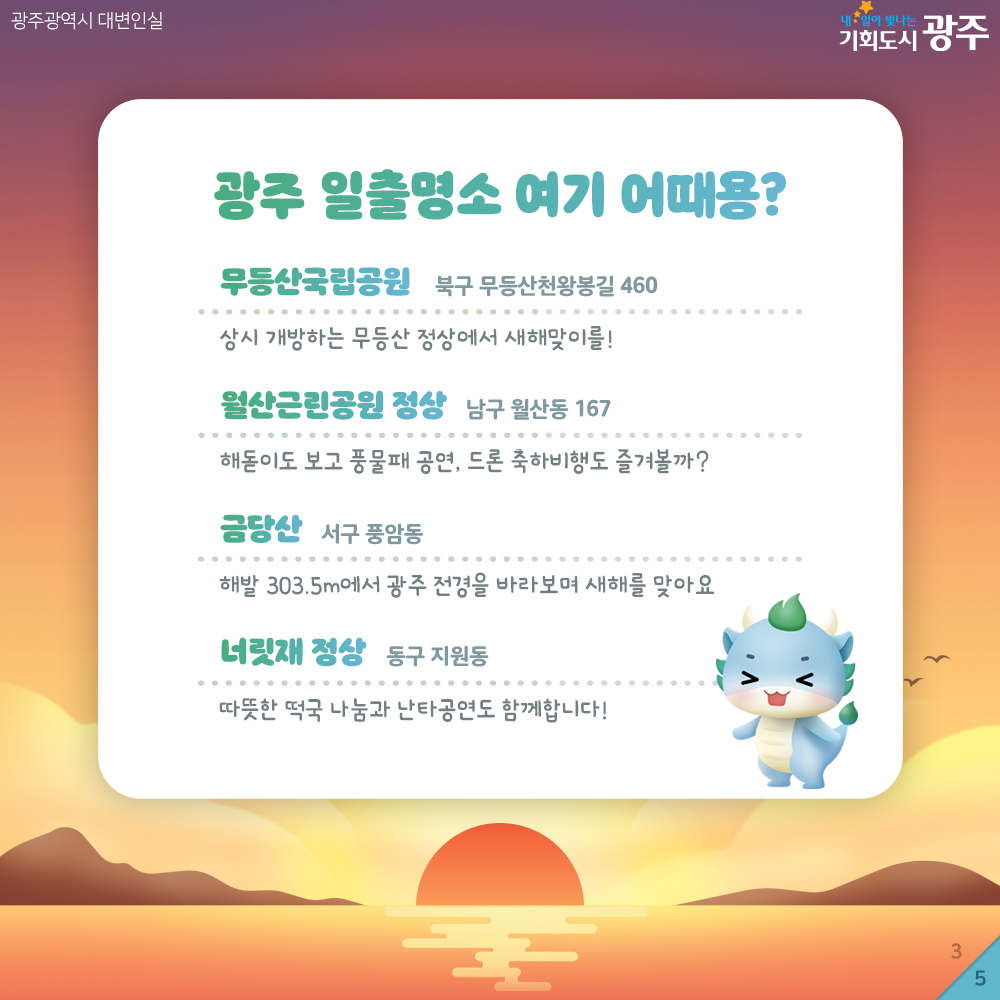 2024 해돋이 이곳에서 봐요(광주 일출 명소 정보)