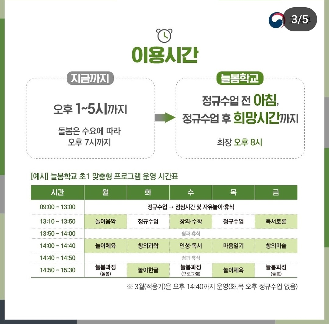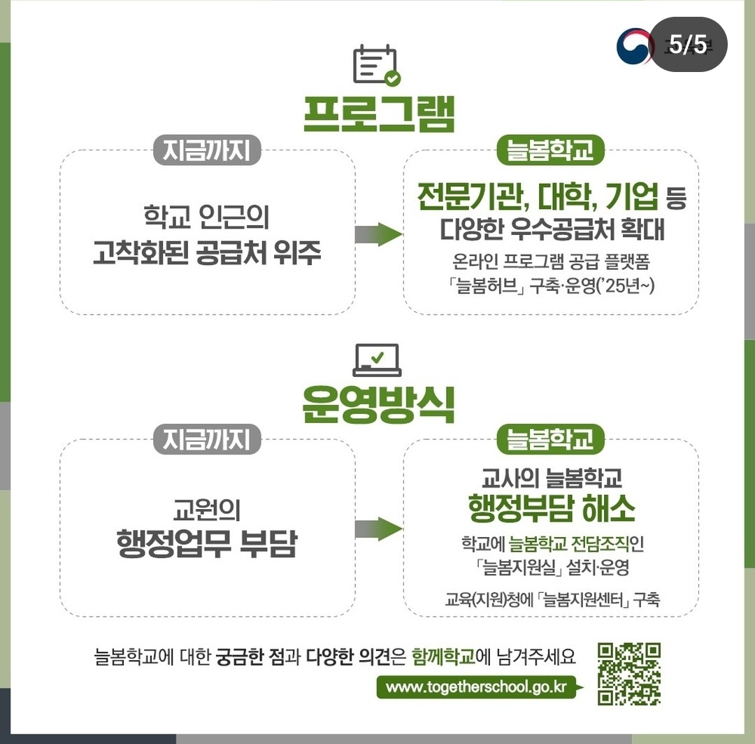 2024 늘봄학교 이렇게 달라집니다! 등록일 : 2024-02-07 09:08 작성자 : 운영자 조회수 : 583 첨부파일 KakaoTalk_20240206_212217951.jpg 다운로드 <출처 : 교육청> 목록