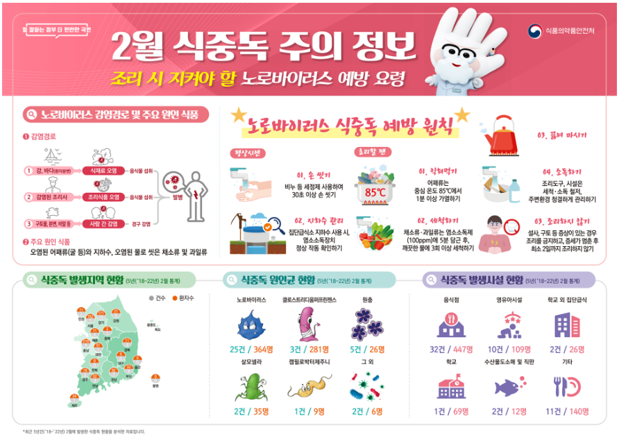 식품의약품안전처(처장 오유경)는 겨울철에 발생이 증가하는 노로바이러스 식중독 예방과 확산을 방지하기 위해