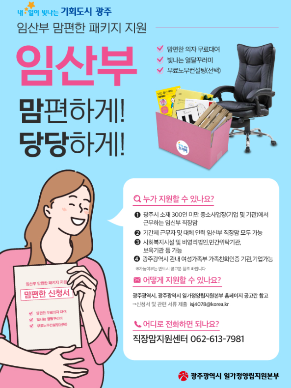 [출처] 임산부 맘편하게! 당당하게! 직장맘 임산부 맘편한 패키지 지원|작성자 광주광역시