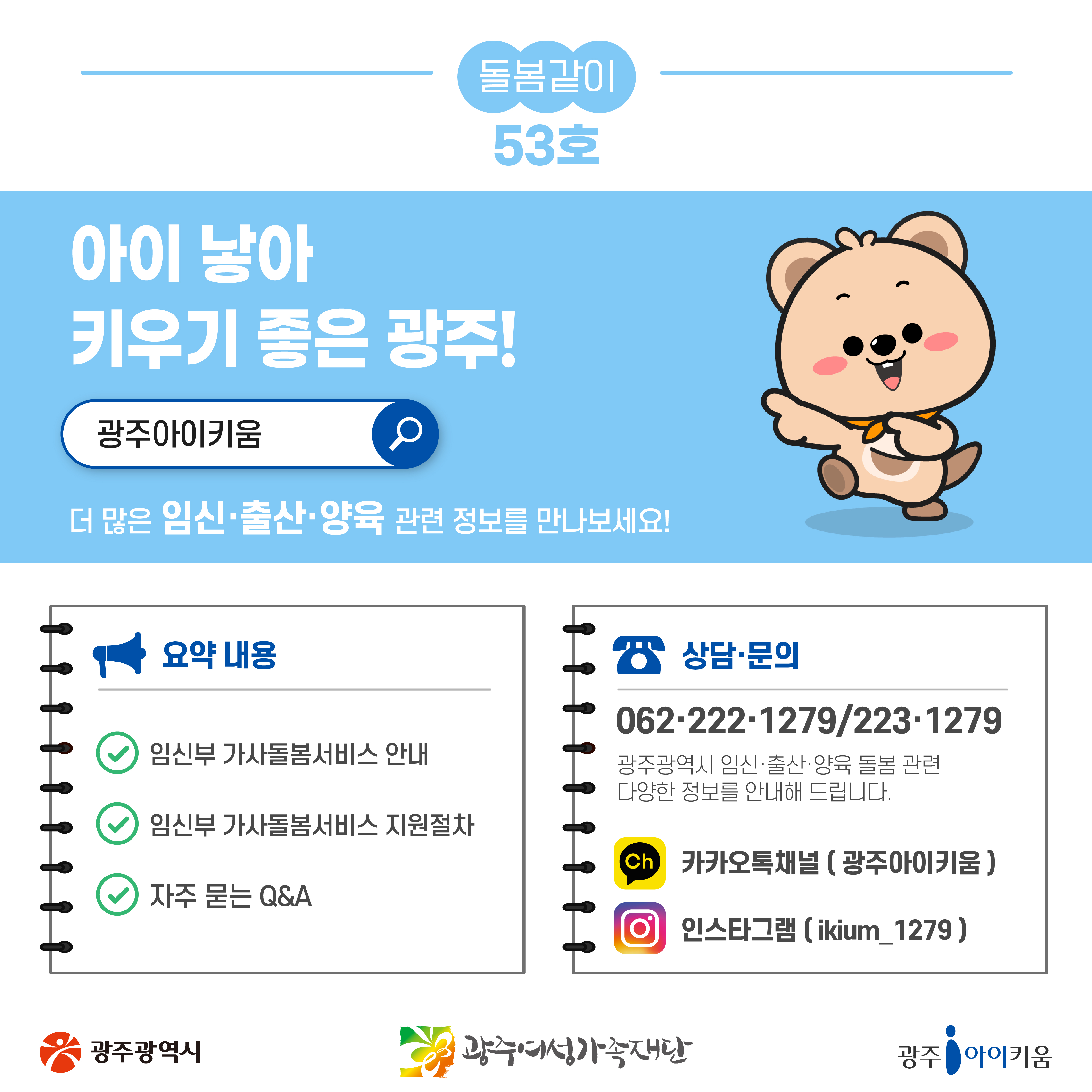 [돌봄같이 53호] 임신부가사돌봄서비스 탐구하기 등록일 : 2024-03-25 10:11 작성자 : 운영자 조회수 : 737 첨부파일 KakaoTalk_20240318_105131283.jpg 다운로드 목록
