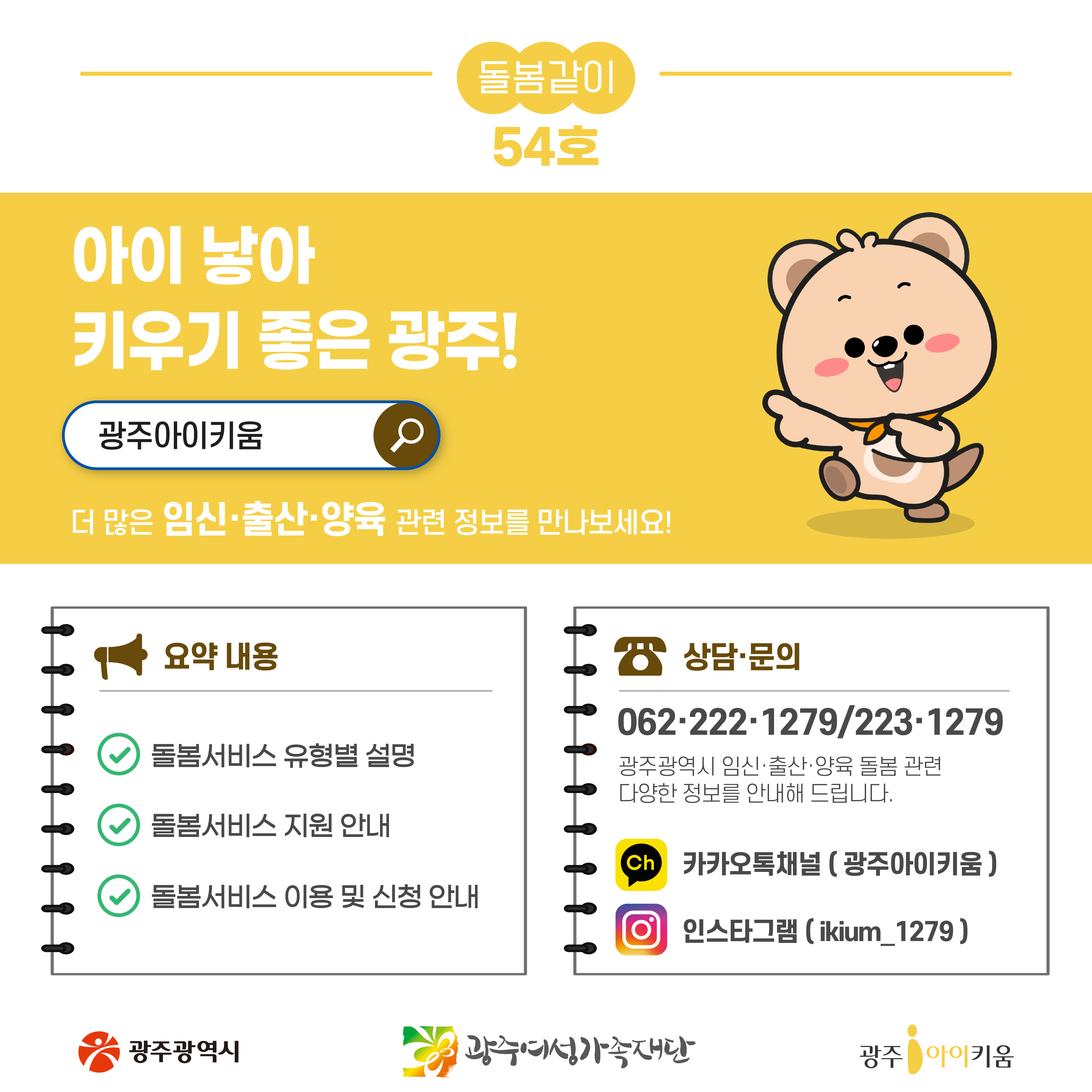 돌봄같이 54호- 우리 아이 돌봄공백, 이렇게 해결하세요 등록일 : 2024-04-12 16:50 작성자 : 운영자 조회수 : 640 첨부파일 KakaoTalk_20240412_164743229.jpg 다운로드 목록