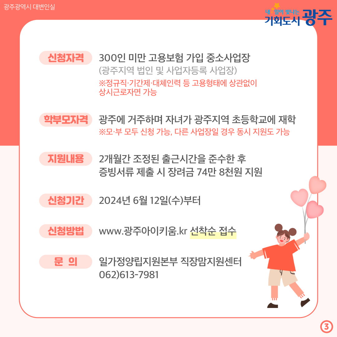 초등학부모 10시출근제 도입 중소사업장 장려금