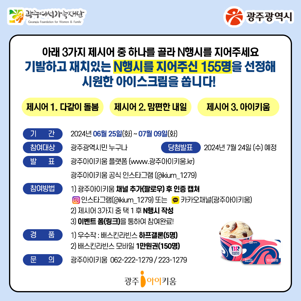 기발하고 재치있는 N행시를 지어지신 155명을 선정해 시원한 아이스크림🍧을 쏩니다!