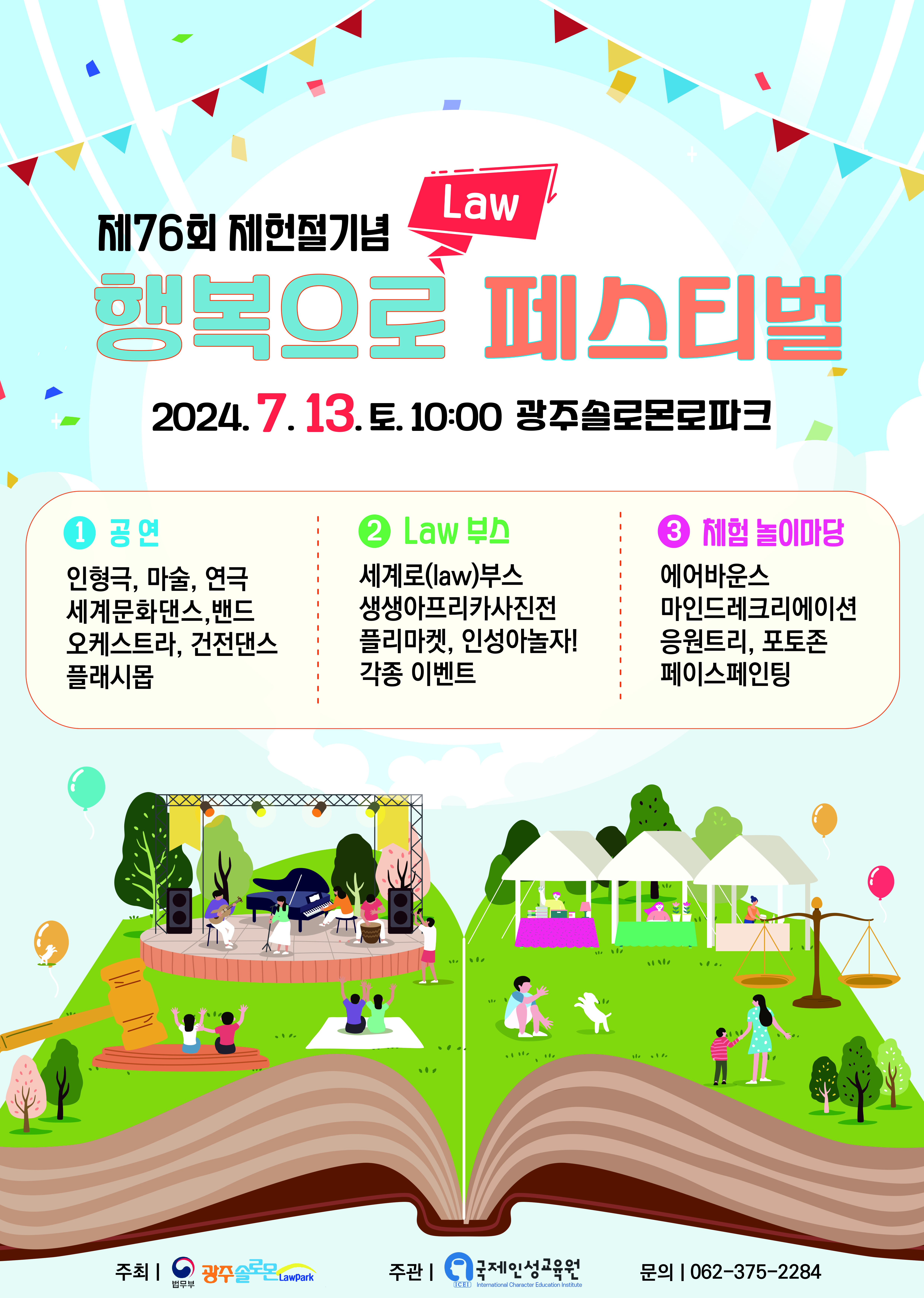 [광주솔로몬파크] 제헌절기념 '행복으로 페스티벌' 등록일 : 2024-07-09 16:57 작성자 : 운영자 조회수 : 603 첨부파일 솔로몬파크 (2).jpg 다운로드 [행사 안내]🔸일시2024.07.13.(토) 10:00🔸장소광주솔로몬파크🔸참가비무료🔸문의062-375-2284<출처> 광주솔로몬파크 목록