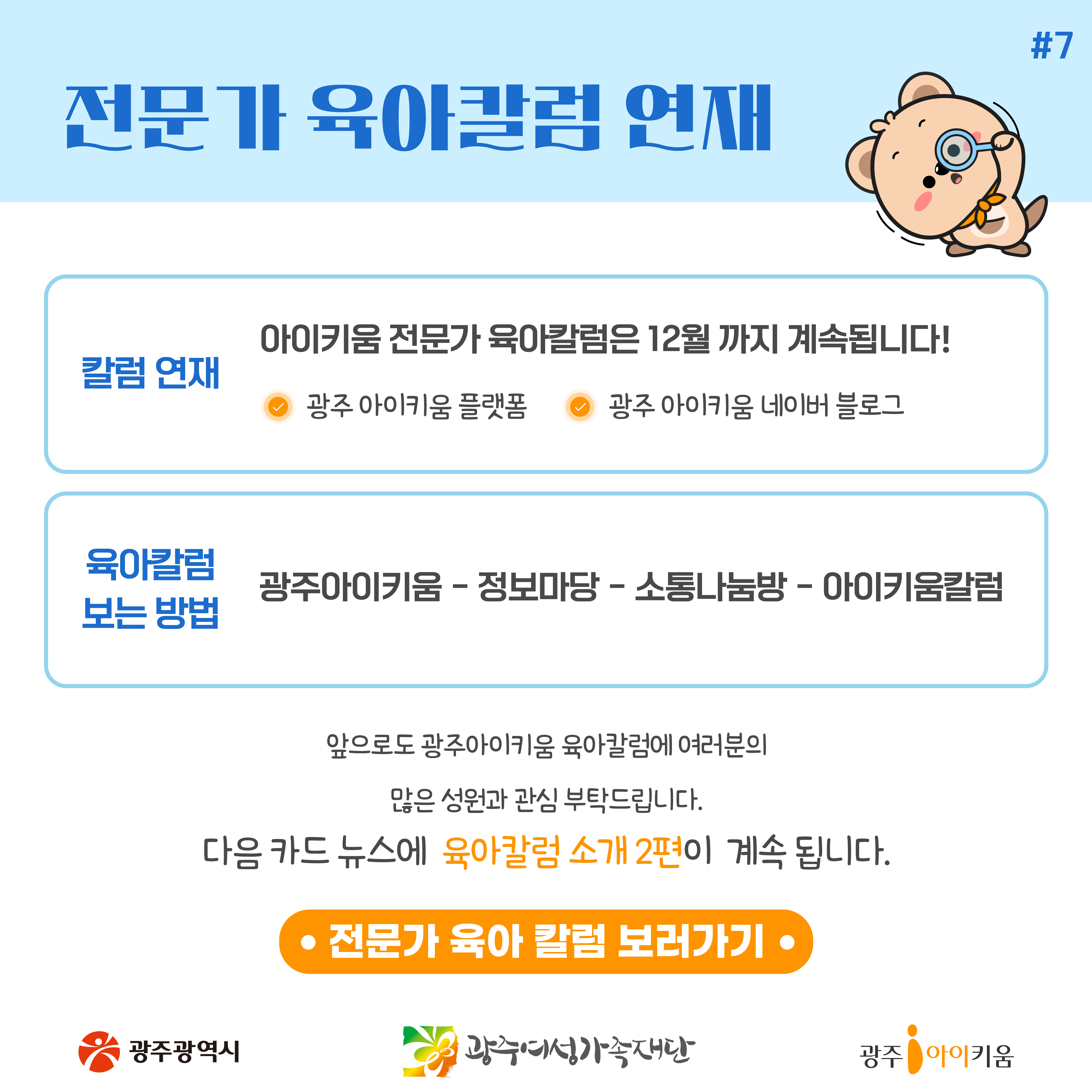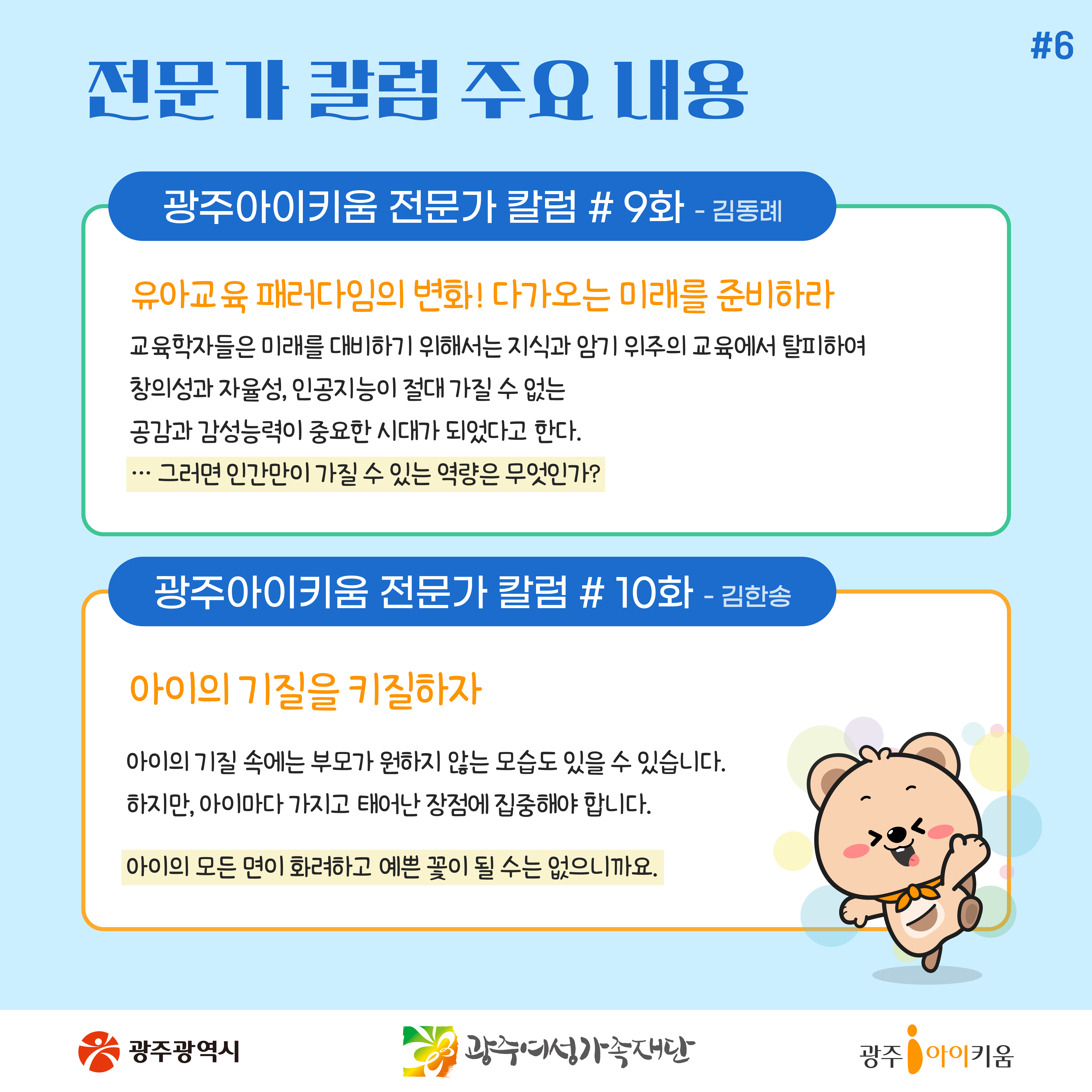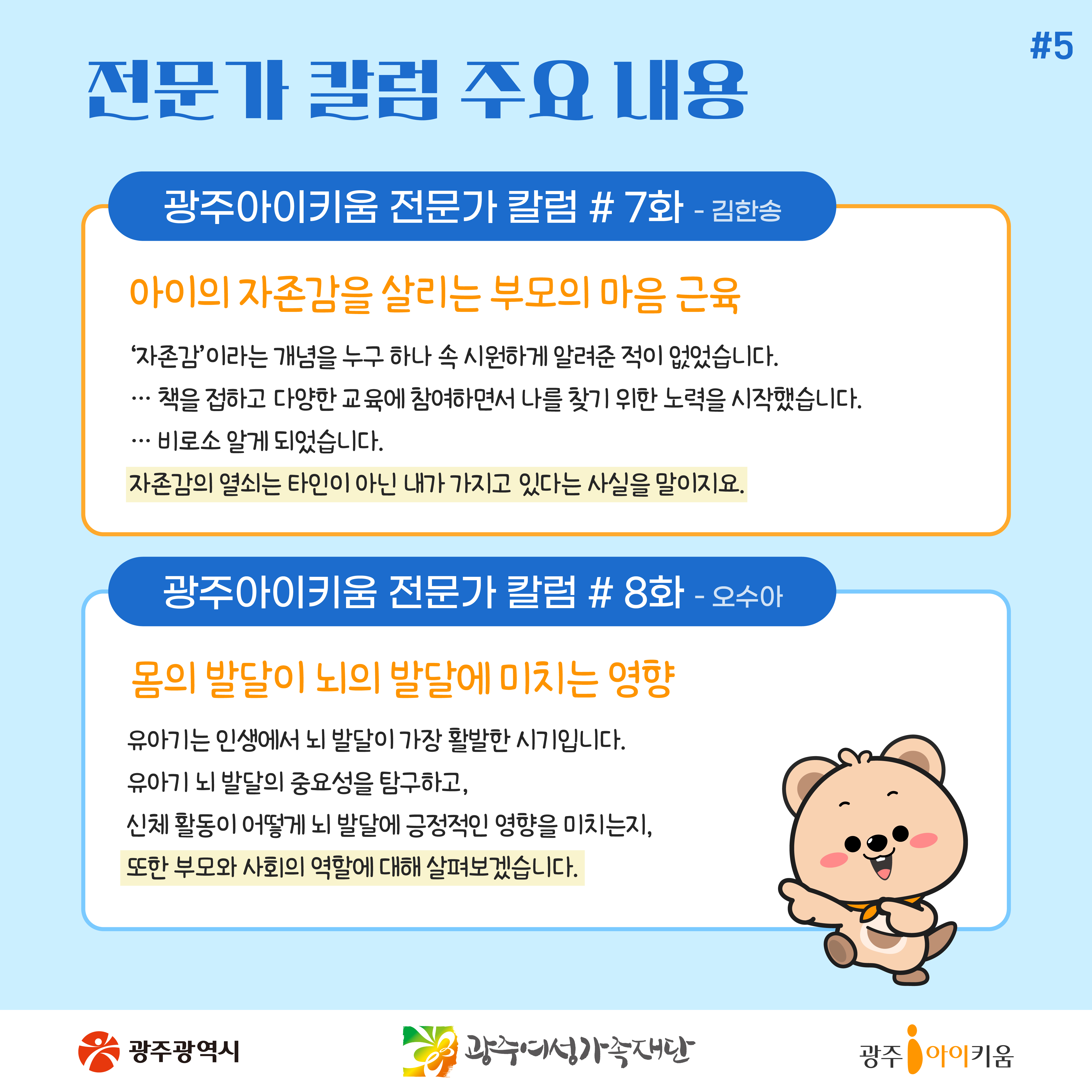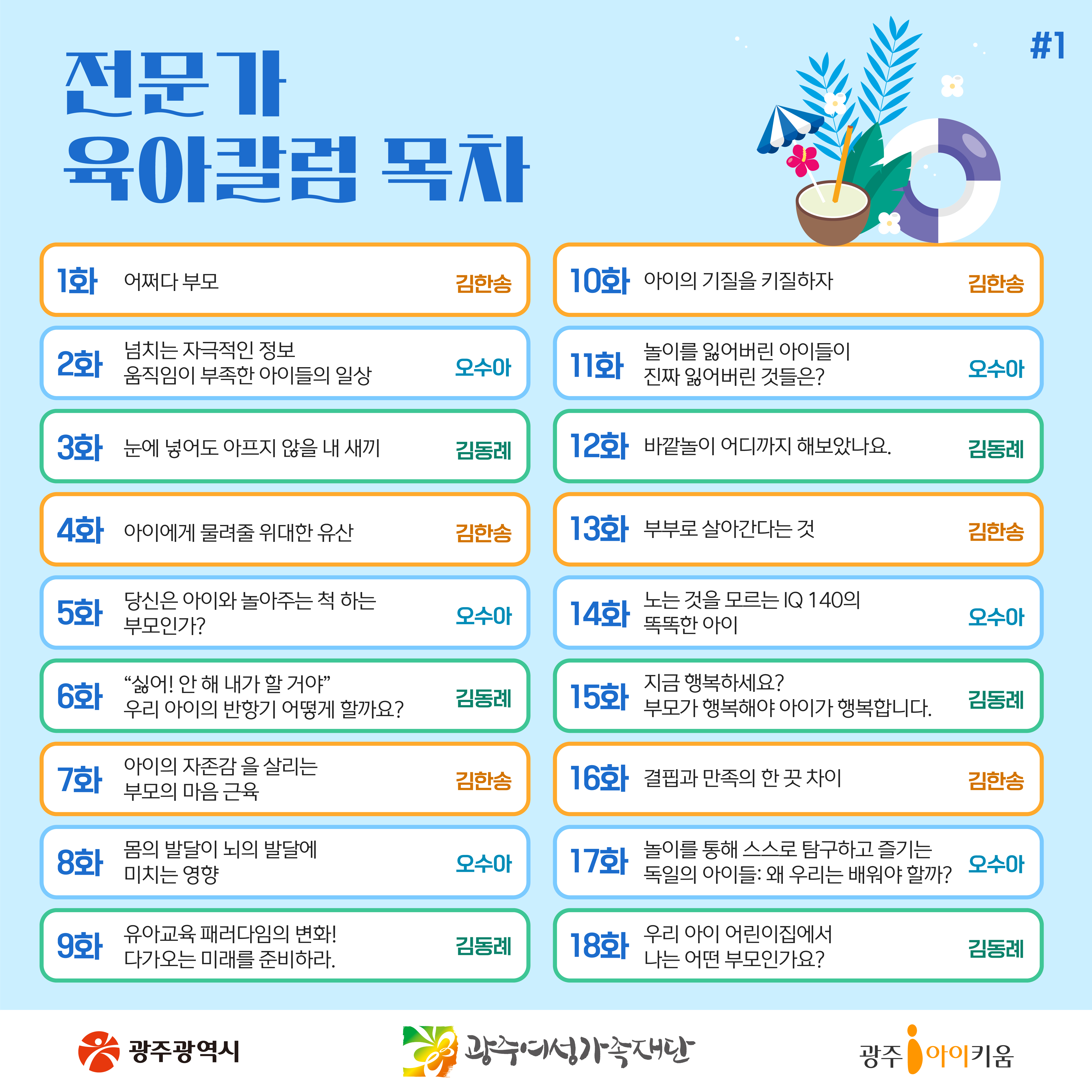 돌봄같이 57호 - 한눈에 보는 전문가 육아칼럼! 등록일 : 2024-08-08 11:22 작성자 : 운영자 조회수 : 456 첨부파일 KakaoTalk_20240801_130321148.jpg 다운로드 목록