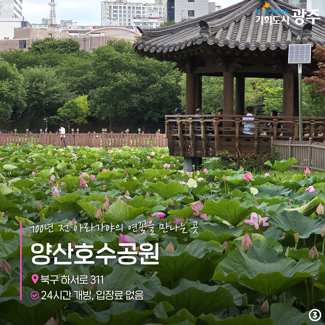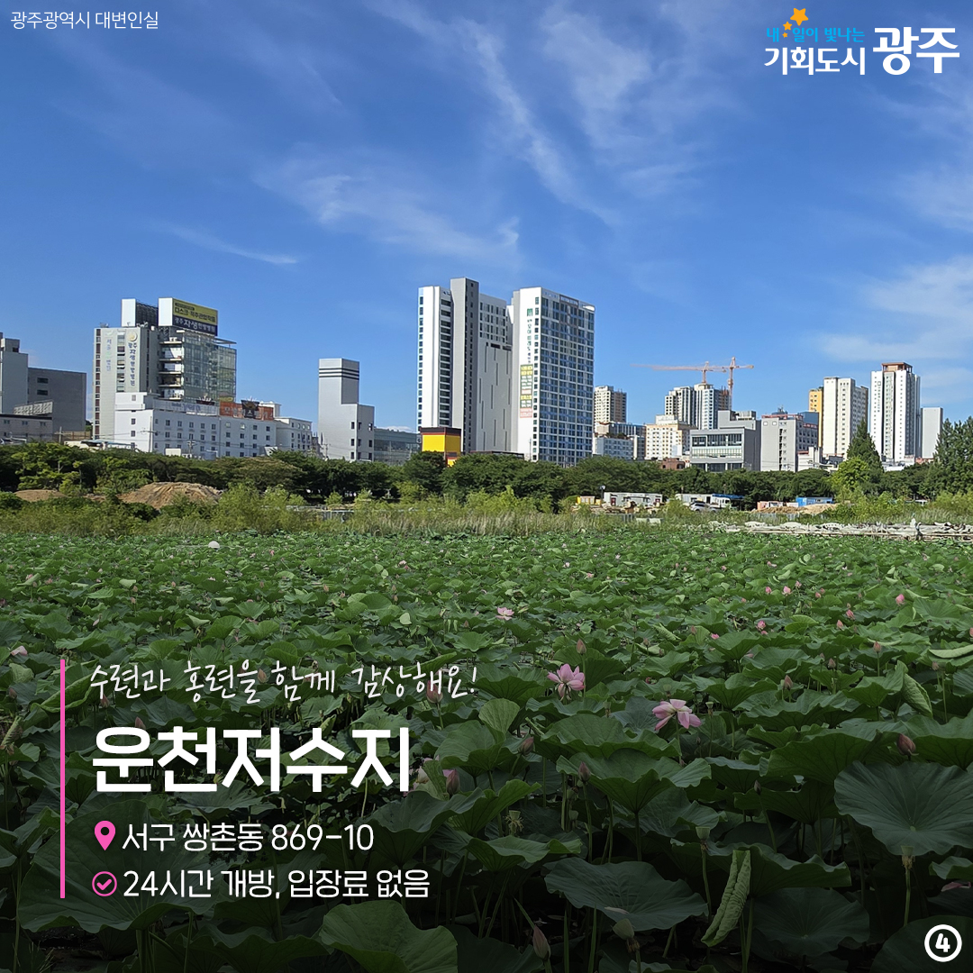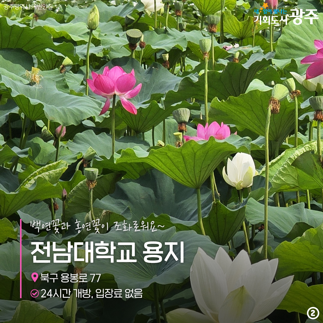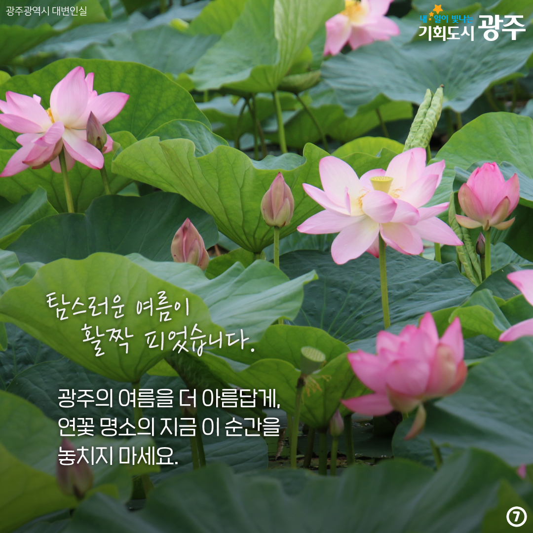 당신의 연은 여기 있어요! 광주 연꽃 명소🌸 등록일 : 2024-08-13 09:33 작성자 : 운영자 조회수 : 452 첨부파일 002.png 다운로드 [출처 : 광주광역시] 목록